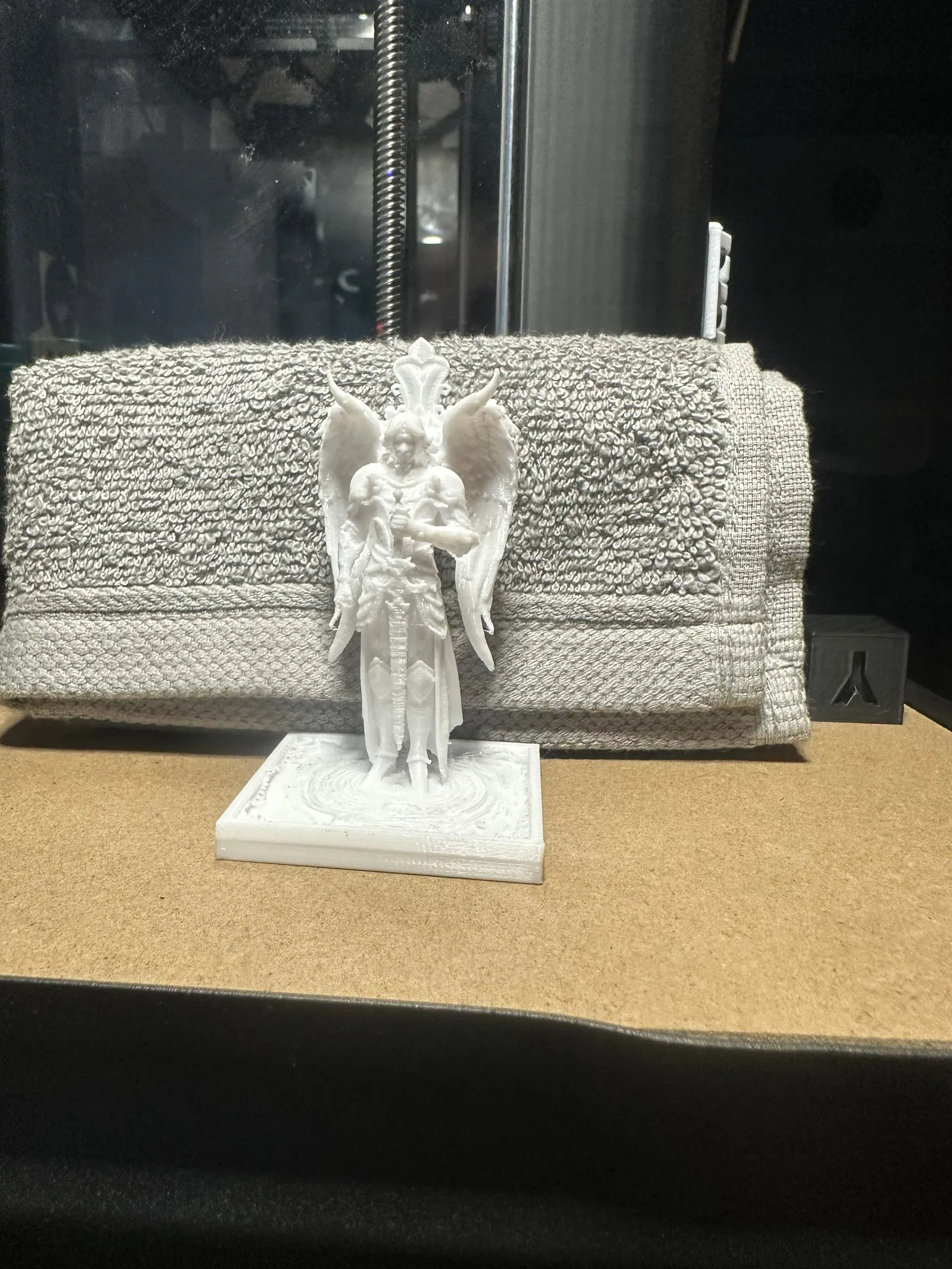 Tượng Guardian angel – một thiên thần mặc giáp bảo vệ. Tác giả đã thử nhiều phiên bản và đang thay đổi phần đế do bản đầu không phù hợp như trong ảnh, đồng thời lên kế hoạch làm thêm các mẫu đi kèm trong tương lai.