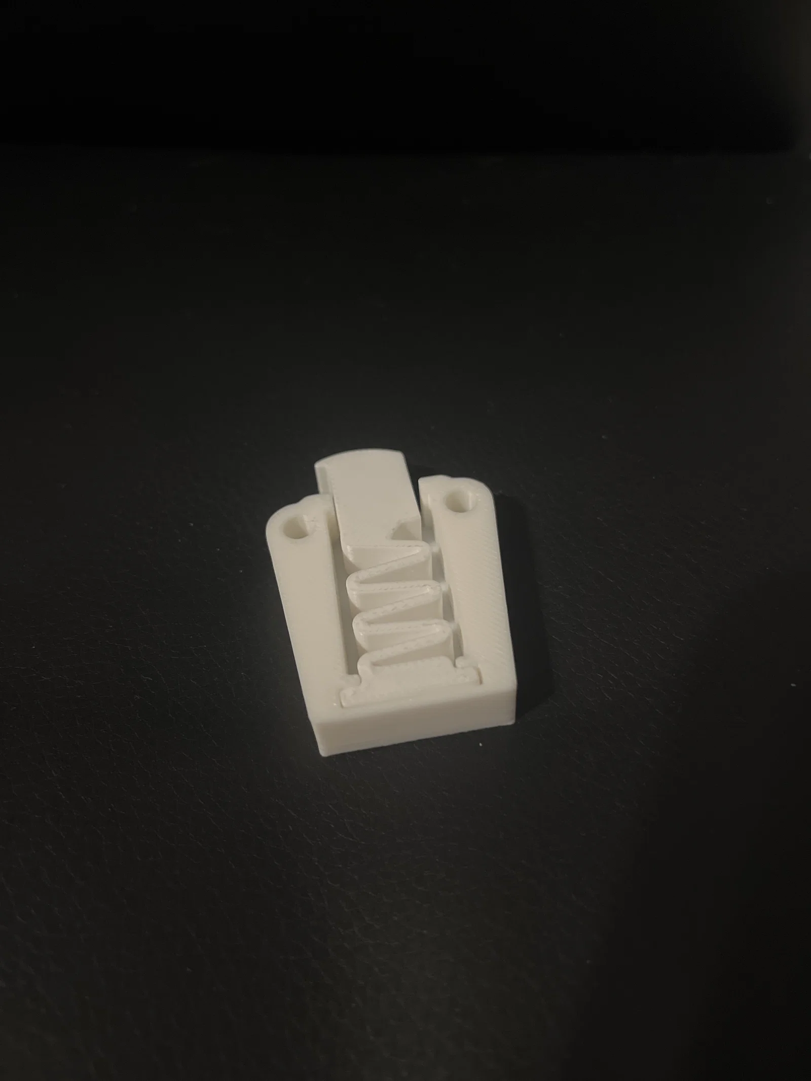 Chốt gài lò xo (spring loaded latch) in 3D. Dùng 2 con ốc 10-32 để bắt cố định. Nhớ in phần lò xo bằng PCTG hoặc PETG, nếu không nó sẽ bị biến dạng và không hoạt động đúng như lò xo. Mình thấy PCTG chạy tốt nhất, còn PETG thì cũng tương đương. Chắc mình sẽ làm một phiên bản cải tiến sớm thôi!