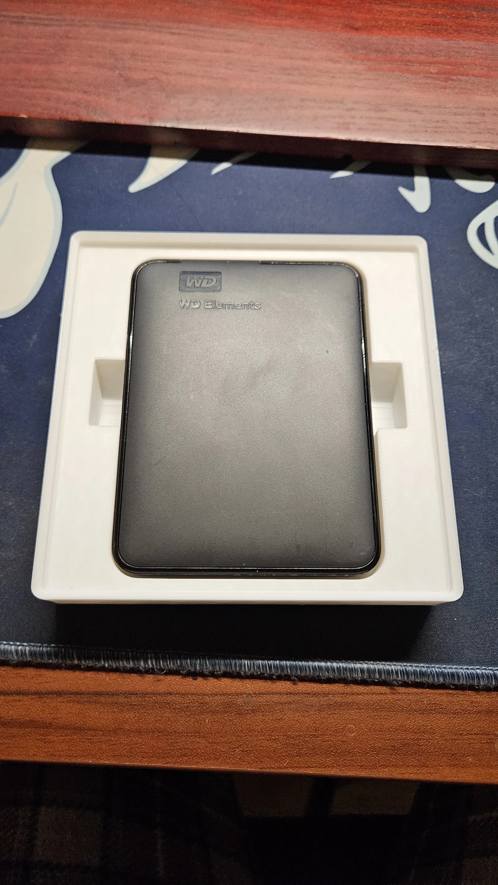 Khay (bin) Gridfinity 3x3 có thể xếp chồng, dùng cho ổ cứng gắn ngoài (external HDD) của WD (Western Digital).