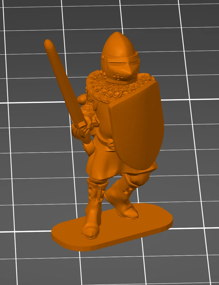 Bản remix hiệp sĩ với mũ giáp mặt heo, đế nhỏ gọn cho miniature. In FDM không cần supports. Nếu làm đồ chơi, nên phóng to 175%. Lưu ý có đầu nhọn sắc, không hợp cho trẻ nhỏ.