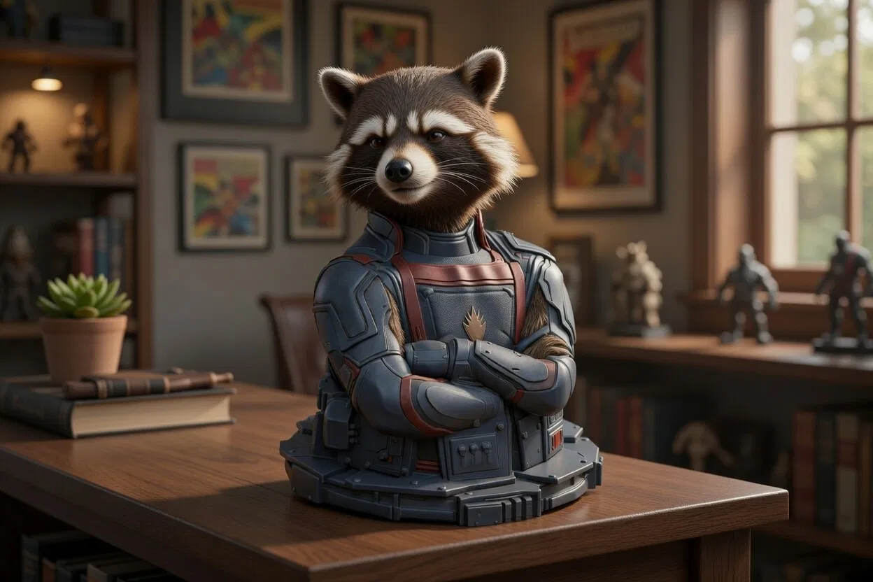 Mẫu Rocket Raccoon Bust siêu chi tiết, nổi bật với giáp cơ khí tinh xảo và texture lông chân thực. Phù hợp để trưng bày và thử thách kỹ năng in 3D. Có Patreon hỗ trợ và tùy chọn giấy phép thương mại.