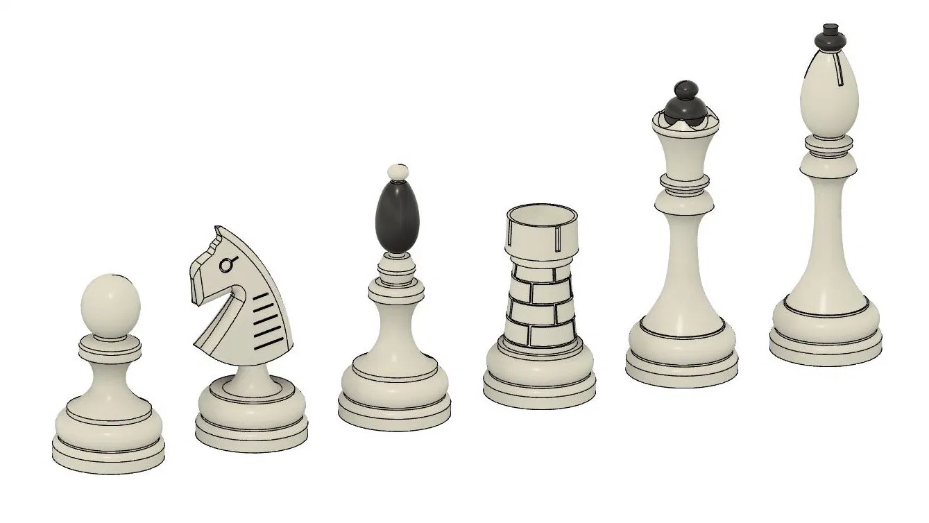 Xe (rook) và Tốt (pawn) in nguyên khối, không cần supports.