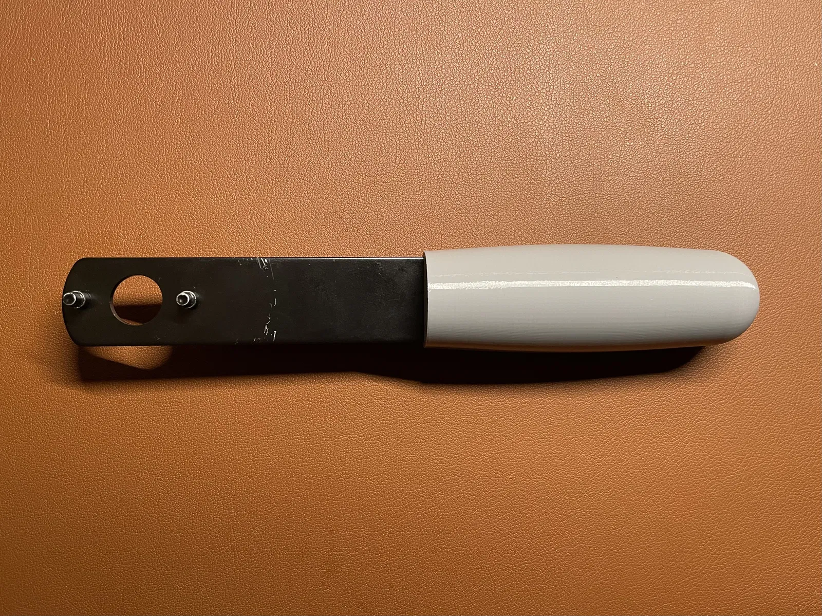 Tay cầm hỗ trợ thay đĩa/đá cho máy mài góc. Thiết kế phù hợp cho tay cầm rộng 30 mm, dày 3 mm; lắp khít khi dùng, hoặc có thể dán keo để gắn cố định lâu dài.