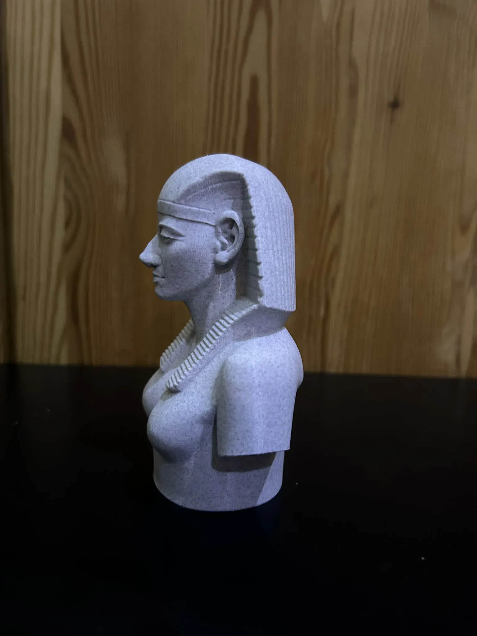 Mẫu tượng bán thân Hatchepsout (Vương triều 18) tái hiện phong cách nghệ thuật Ai Cập cổ: gương mặt lý tưởng hóa, đối xứng chuẩn, thần thái điềm tĩnh và uy quyền, lấy cảm hứng từ tượng lịch sử để in 3D.