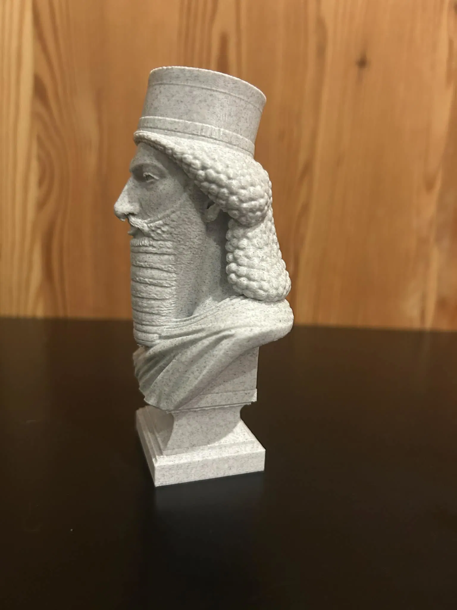 Mô hình tượng bán thân Xerxes I, Đại Vương đế quốc Achaemenid thế kỷ V TCN. Thiết kế dựa trên phù điêu Ba Tư với râu dài stylized, tiara hoàng gia và thần thái trang nghiêm, phù hợp in 3D.