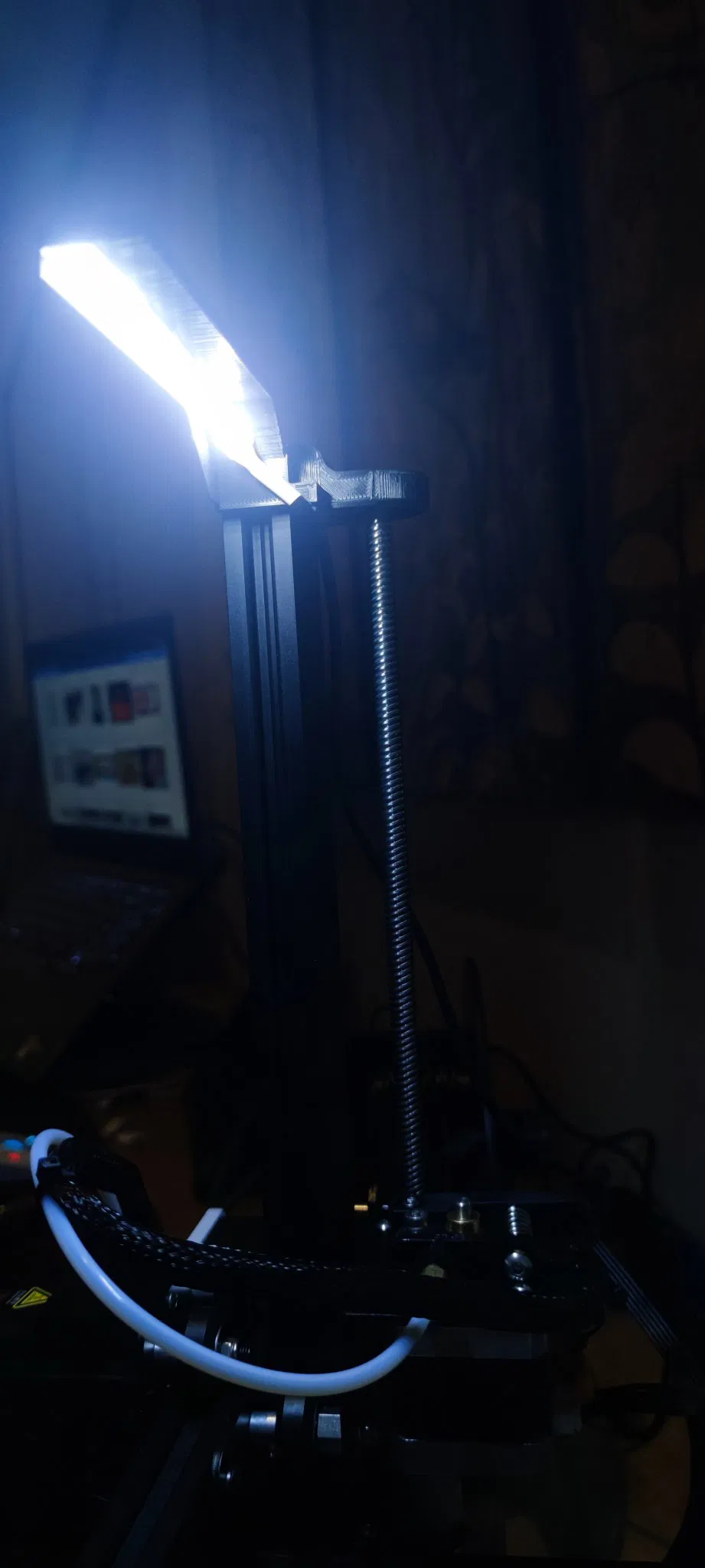 Có thể in theo chiều dọc với Ender 2 Pro. Tôi đã cắt dải đèn LED đến kích thước phù hợp để vừa với thanh. Tôi đã sử dụng băng dính 3M hai mặt ở đầu nơi dây đi về phía phần đùn. Nếu bạn có bất kỳ câu hỏi nào, hãy cho tôi biết, cảm ơn. Hy vọng bạn thích.