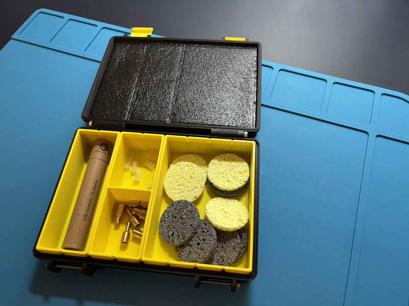 Cắt một miếng foam (~10 mm dày) cho phần nắp để khi đóng lại nó giữ chặt các insert.