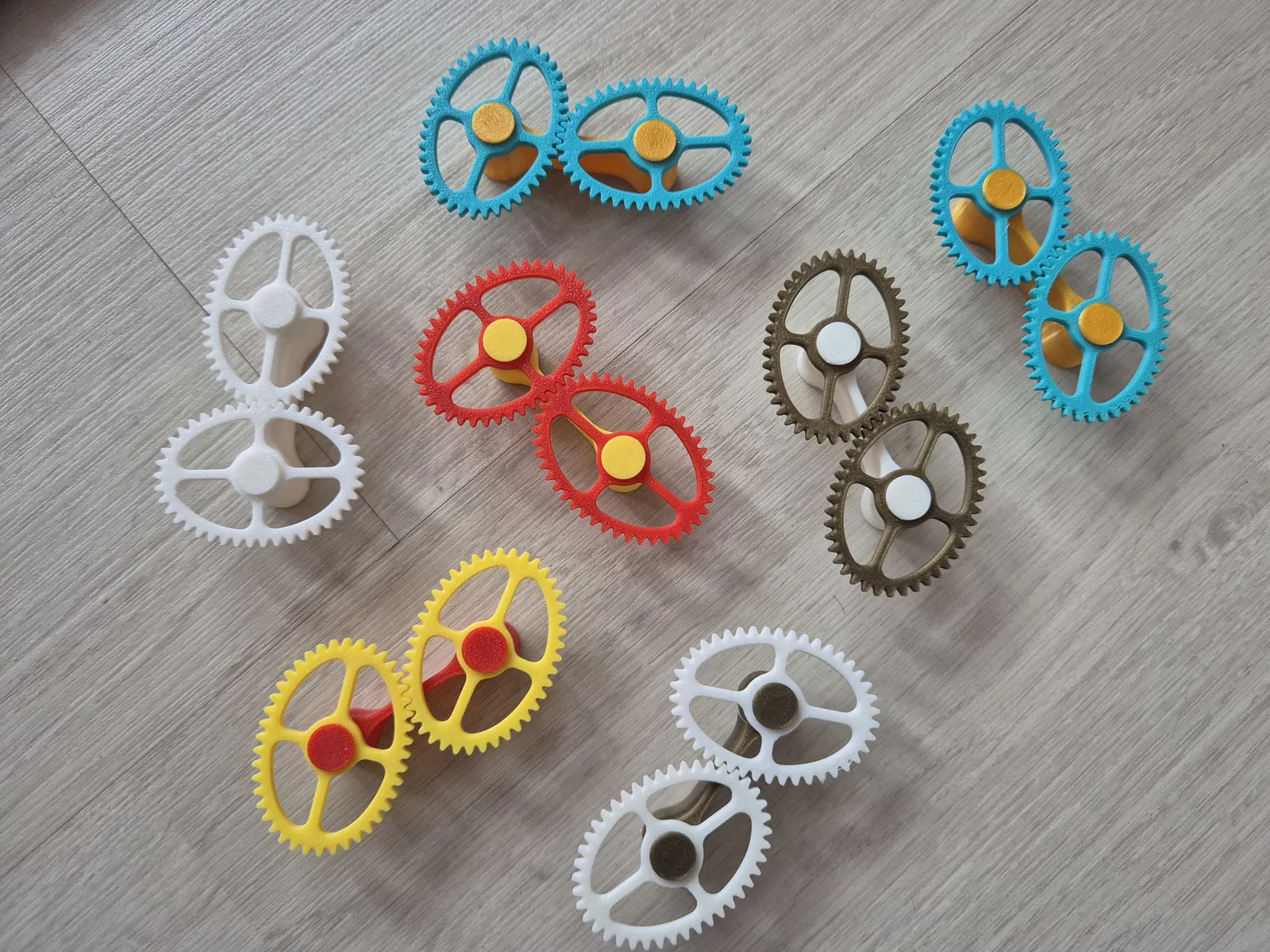 Gear Fidget Spinner dạng bánh răng, lướt siêu mượt và khớp sát, modular dễ lắp. Mỗi gear gồm 5 phần, đa số không cần keo. Có 3 size: Small, Medium và Massive/Oversized cho cảm giác quay và âm thanh khác nhau.