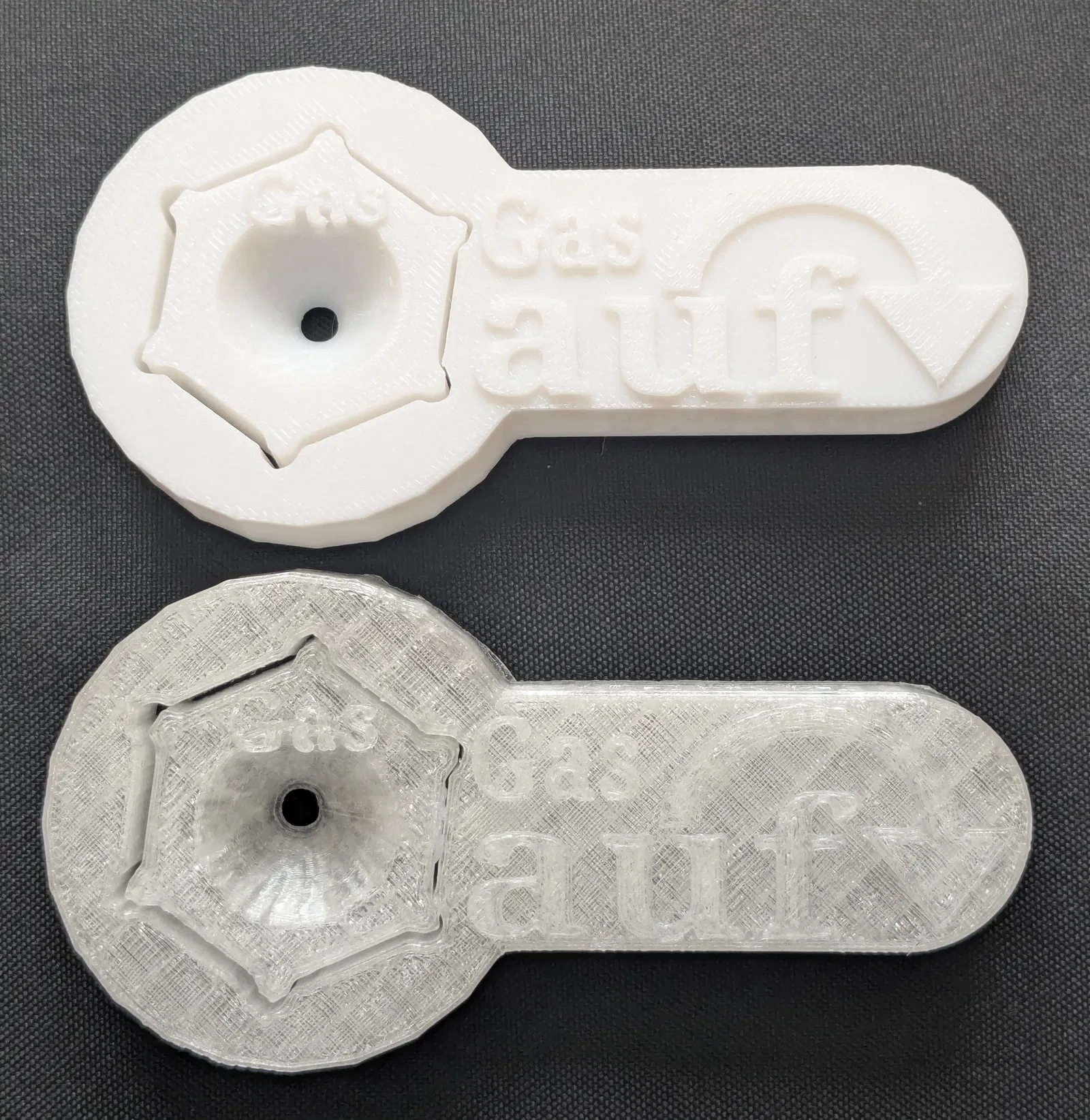 Chìa và giá đỡ được in chung với nhau. Lỗ trên giá đỡ dùng cho vít đầu chìm 4,5 x 16. Trên chìa và trên giá đỡ mỗi cái có 1 lỗ đường kính 4 mm, dài 6 mm để gắn nam châm.