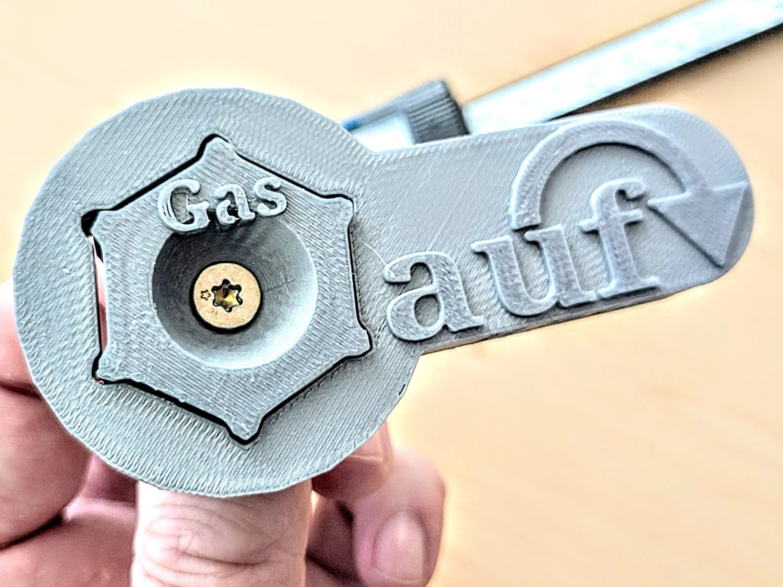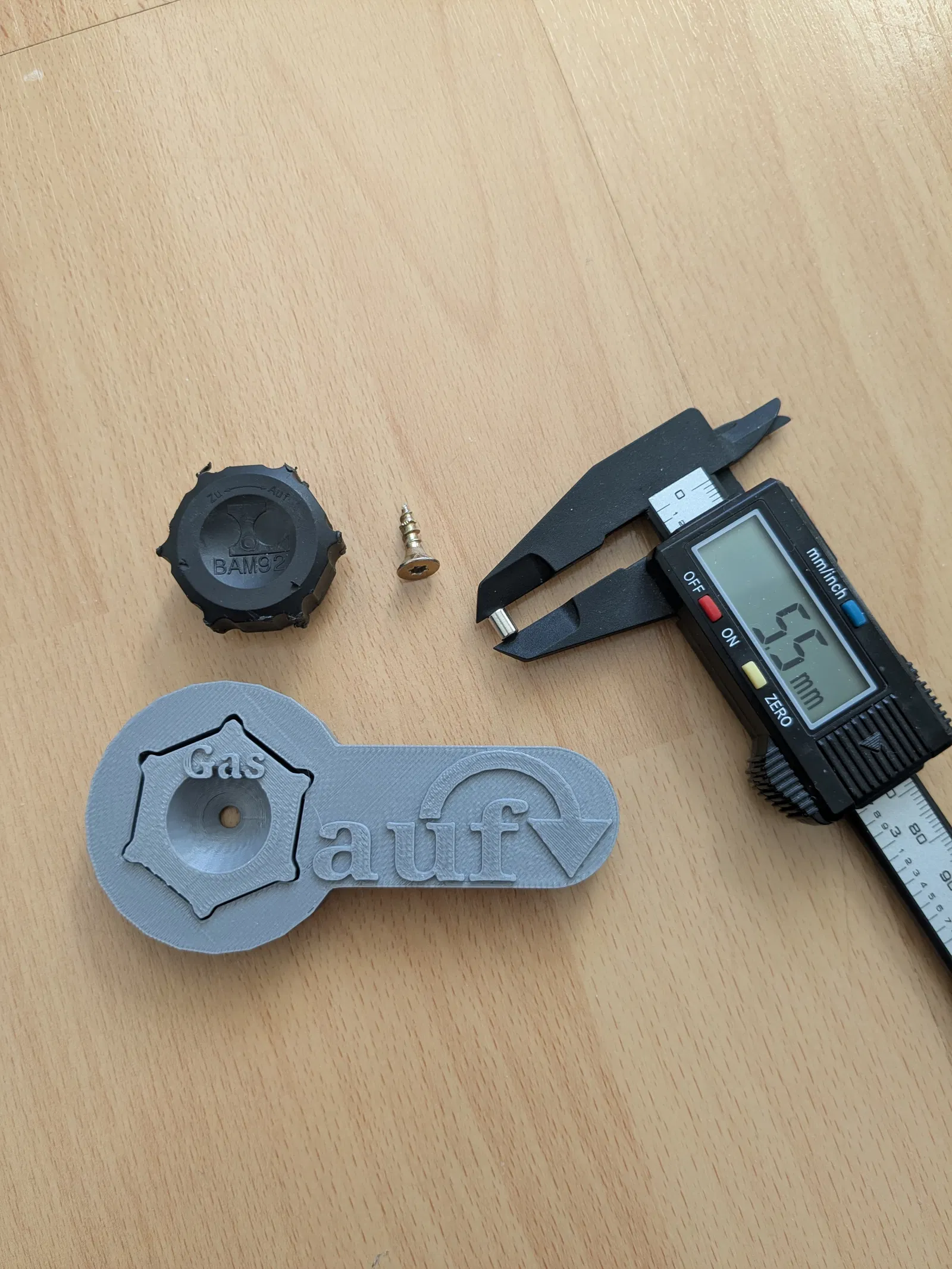 Chìa mở nắp/nút bịt bình gas cho Camper RV (5 kg/11 kg). Chìa và giá đỡ in chung; lỗ bắt vít đầu chìm 4,5×16. Mỗi phần có lỗ 4 mm dài 6 mm để gắn nam châm. Có link video tham khảo.