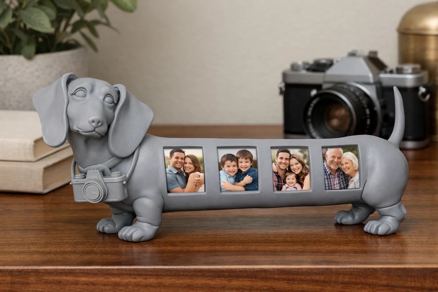 Mẫu khung ảnh Dachshund (chó lạp xưởng) dễ thương, phù hợp để in 3D làm khung ảnh trang trí bàn làm việc hoặc góc nhà. Thiết kế gọn gàng, giúp trưng bày hình kỷ niệm theo phong cách riêng.