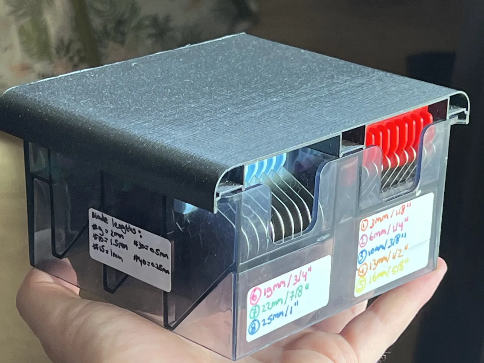 Một nắp trượt trên hộp lưu trữ được bao gồm trong một bộ đầu tông đơ WAHL.