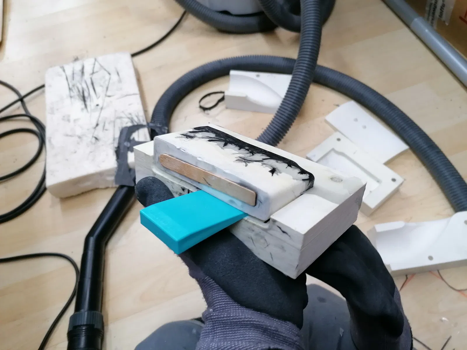 Mình cũng làm thêm một cái preplunger để ép sơ hỗn hợp carbon fiber vào đúng vị trí trước khi dùng plunger ép chặt tất cả lại. Preplunger không bắt buộc. Mình thường chỉ dùng que trộn để đẩy sơ cho đúng chỗ.