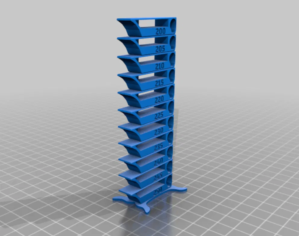 Model dùng để calibrate tháp nhiệt độ (temperature tower) khi in 3D, giúp bạn test và chọn nhiệt độ in phù hợp theo từng mức để tối ưu độ bám lớp, bề mặt và hạn chế stringing.