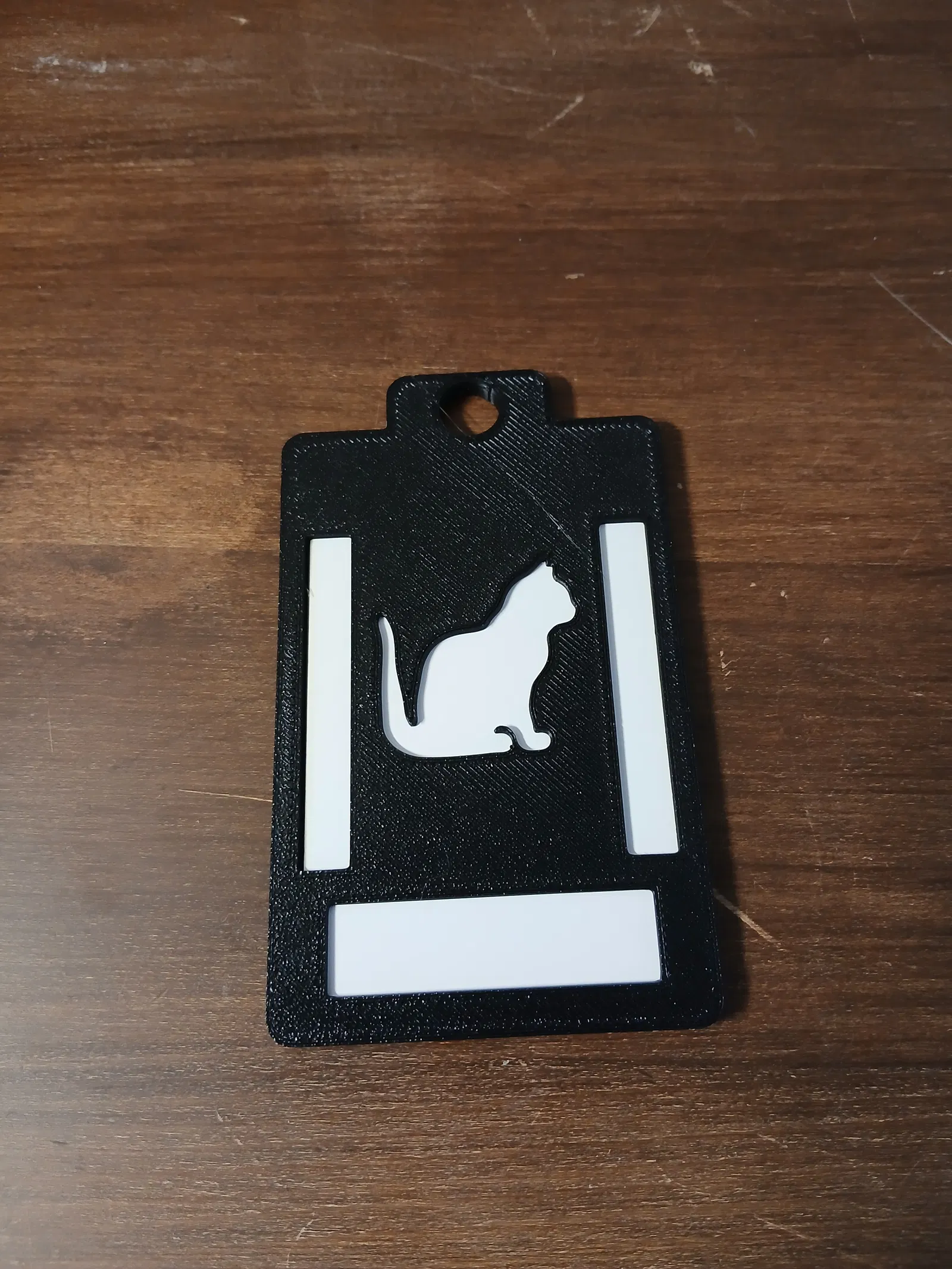 Kẹp thẻ (badge holder) liền khối với silhouette hình mèo.