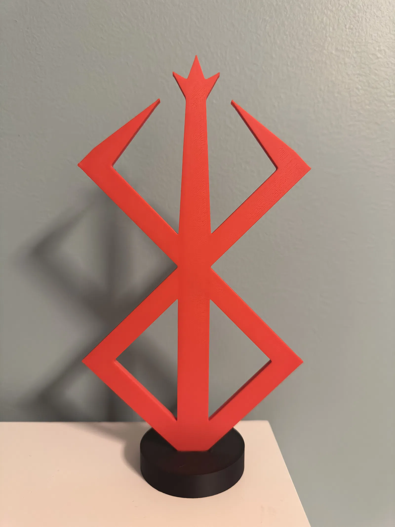 Mô hình Brand Of Sacrifice (Dấu Ấn Tế Lễ) trong Berserk, đi kèm bệ đỡ để trưng bày. Phù hợp để in 3D làm đồ sưu tầm cho fan Berserk và Guts.