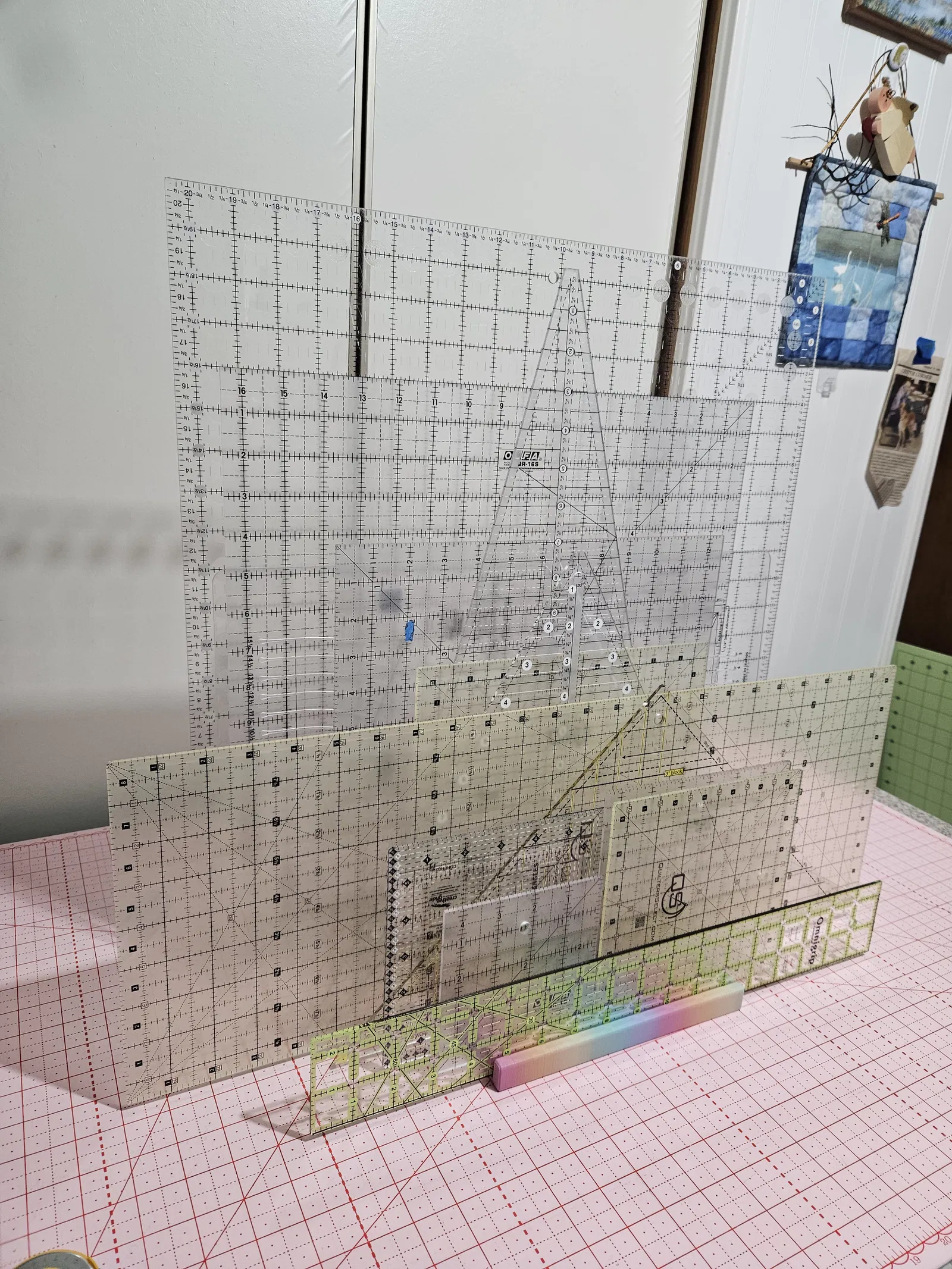 Mẹ mình muốn có cái gì đó để giữ mấy cây thước quilting và, trời ơi, mình thì muốn làm con ngoan để Mẹ vui. Mình không biết kích thước tối ưu là bao nhiêu nên mình dựng một model để có thể lặp lại/điều chỉnh dần.