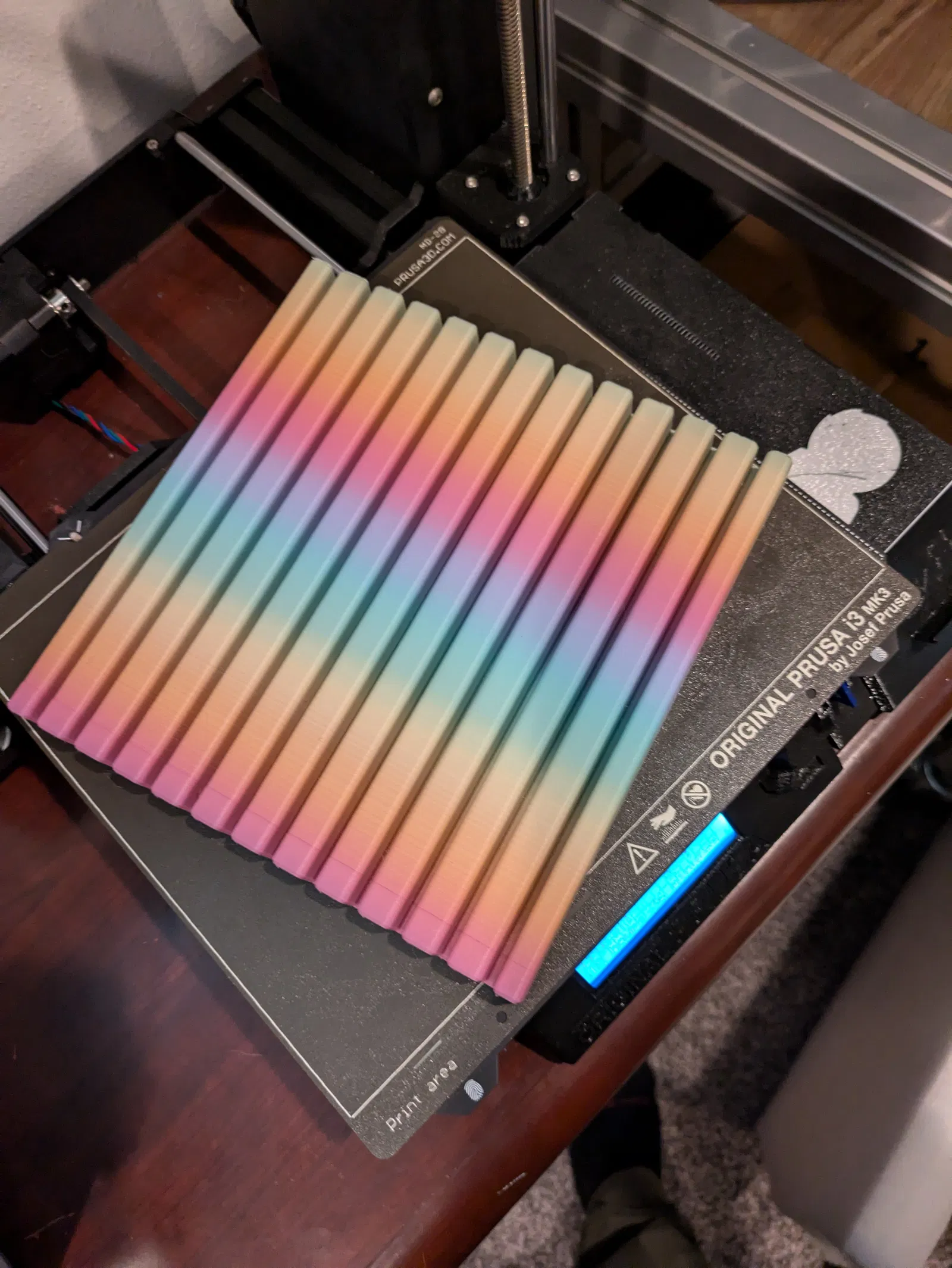 Model được cung cấp là phiên bản 12 khe, dành cho thước dày 1/8" và bề ngang tổng 200mm. Mình in theo phương dựng đứng thấy ổn, có brim, layer height 0.3mm, 2 perimeters, 15% gyroid infill.
