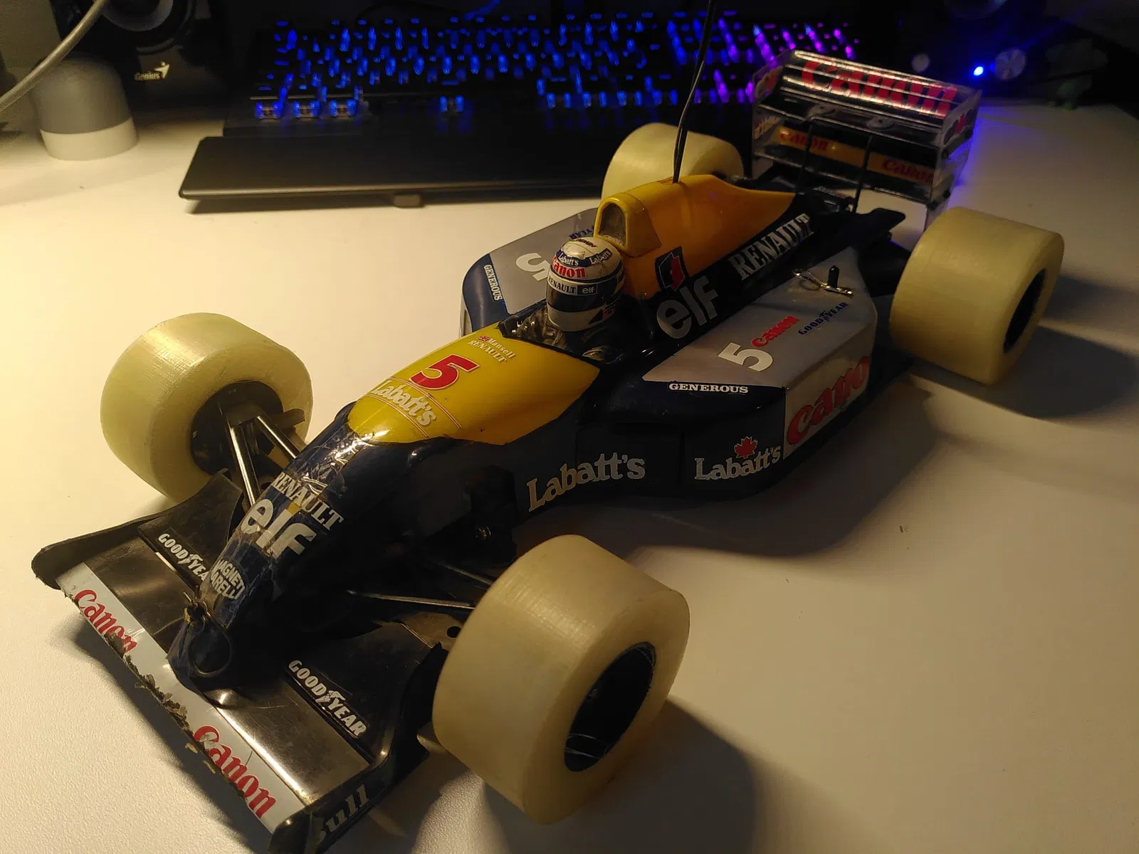 Lốp in 3D cho xe RC Tamiya F102: tự thiết kế bằng Fusion 360 và in bằng TPU. Do chỉ có TPU màu tự nhiên nên nhìn chưa “ngầu” như màu đen, và khi chạy vẫn ổn nhưng hơi trơn.