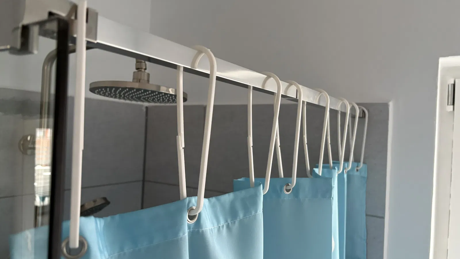 Mẫu móc treo rèm phòng tắm bản dài, giúp khắc phục chênh lệch chiều cao khi thanh treo cách sàn ~195cm so với rèm 180/200cm. Có thể resize để hợp nhiều kích thước; in ASA hoặc PETG, cần support nhỏ.