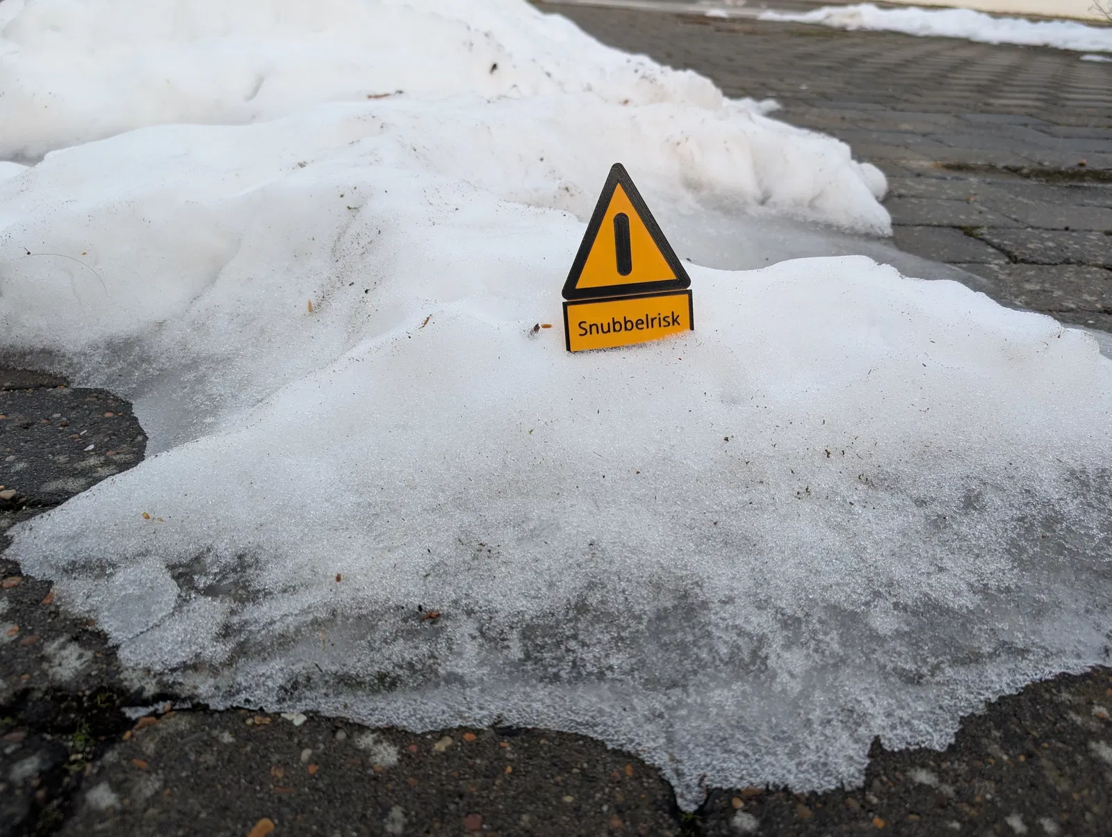 Snubbelrisk là bảng/cảnh báo về nguy cơ vấp té. Mẫu được tạo bằng cách thêm SVG trong Orca Slicer và đã export sẵn file STL để phòng khi cần dùng với các slicer khác.