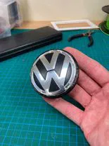 Mẫu nắp chụp tâm mâm VW 65mm (Part number: 3B7601171XRW). Nếu còn nắp zin, khò heat gun để tháo miếng logo nhôm, in file rồi dán lại bằng contact adhesive; cũng có thể dùng không cần logo.