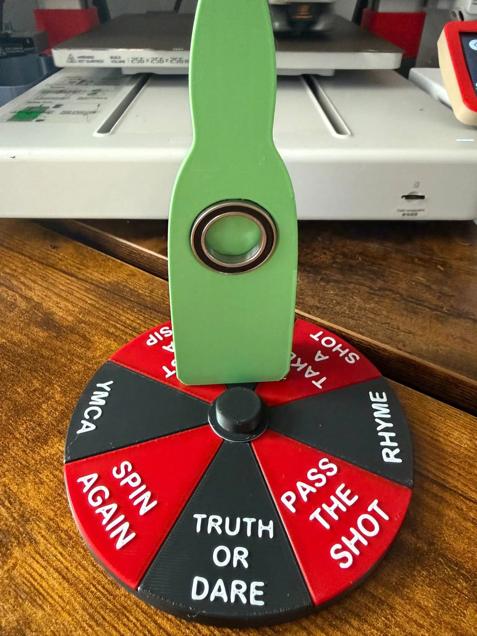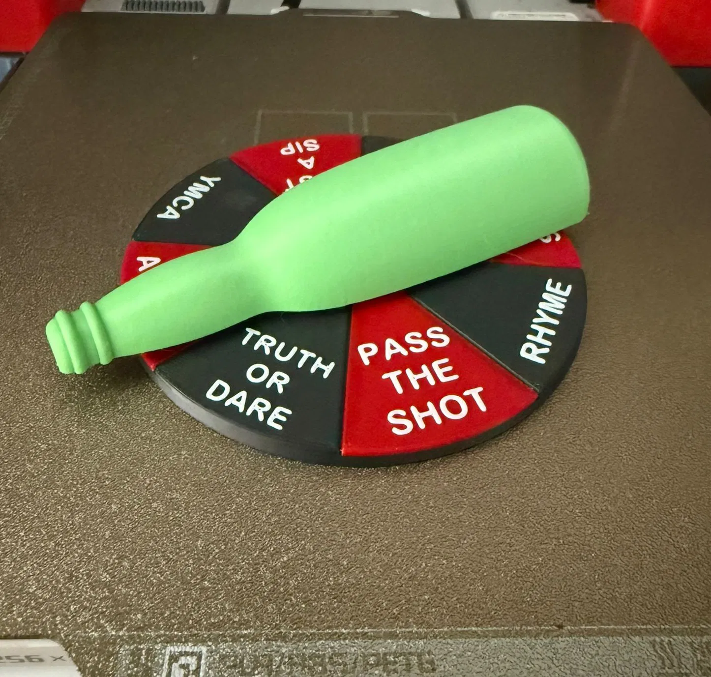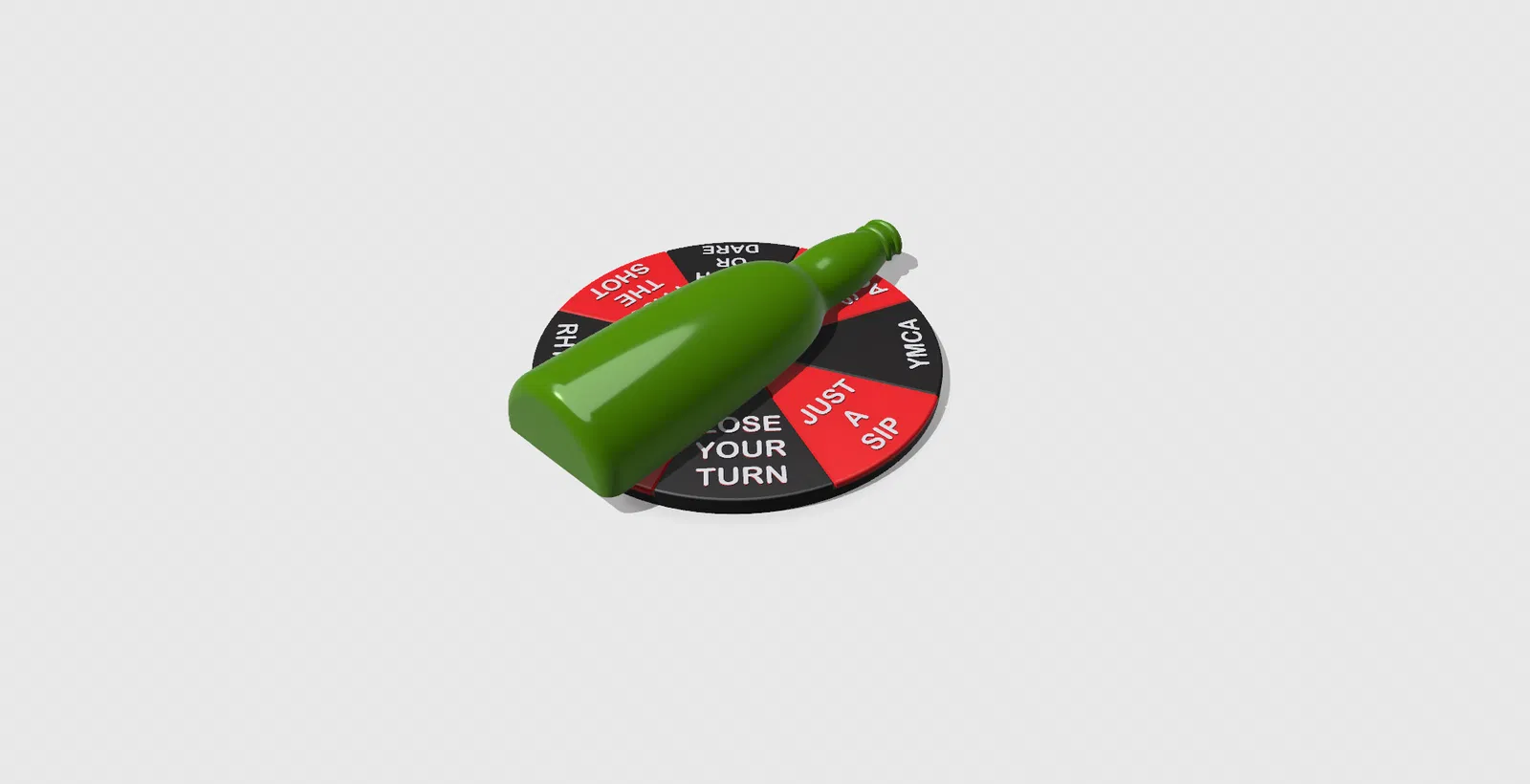 Mẫu Spinning Bottle Party Pub Game: trò chơi chai quay cho pub/tiệc, giải trí tương tác cho sinh nhật, tụ tập, tiệc độc thân. Chai nhựa xoay kèm thẻ Dare/Truth và spinner tích hợp dùng vòng bi 6803 2RS.