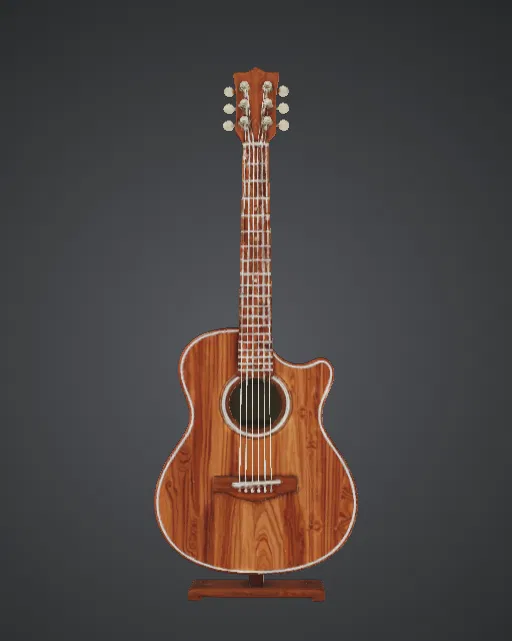Tôn vinh tay nghề thủ công và âm nhạc với mẫu trưng bày Acoustic Guitar được làm chi tiết này. Sở hữu dáng thân cutaway cổ điển, lỗ thoát âm rõ nét, ngựa đàn (bridge), khóa lên dây (tuning pegs) và phần cần đàn (fretboard) được khắc họa kỹ, mô hình tái hiện vẻ thanh lịch của một cây acoustic steel-string hiện đại.