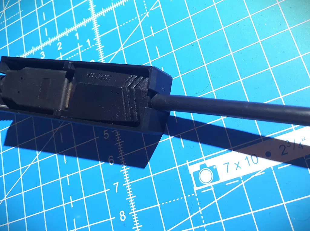 Một cái hộp để nối cáp USB-A của Shining 3D Einstar với một dây nối dài HAMA USB-A 3.0 5 Gbit/s.