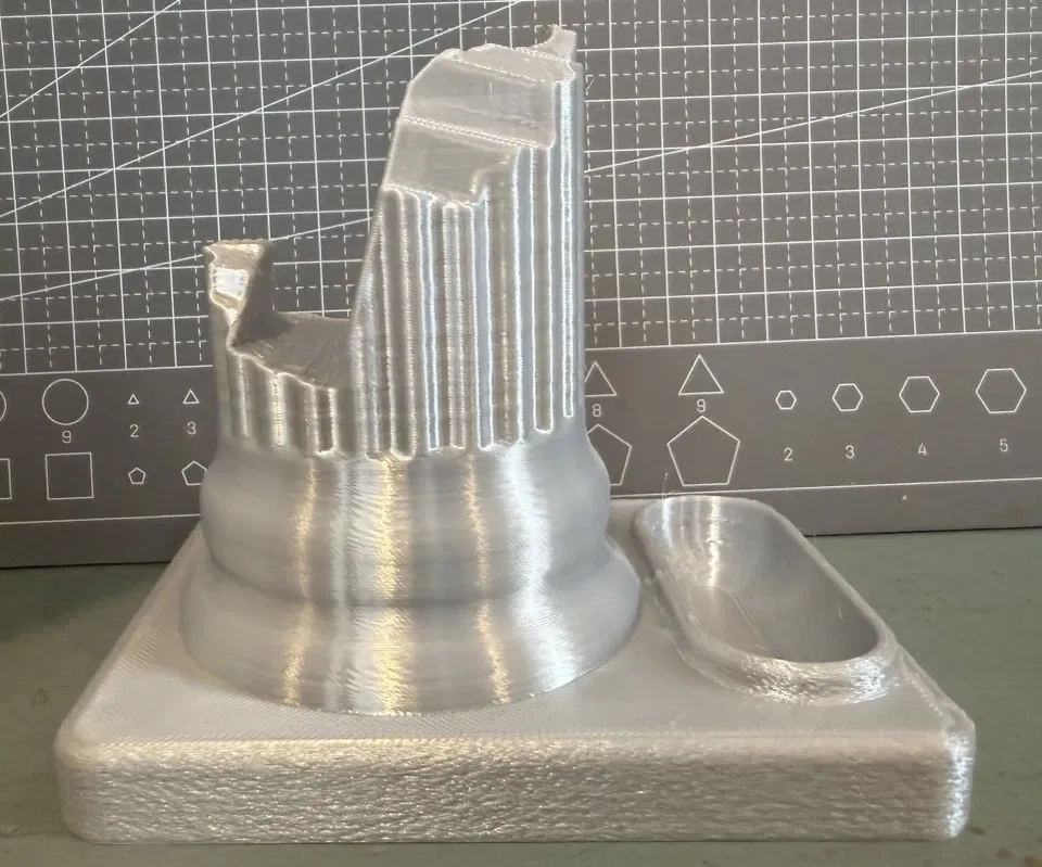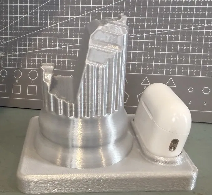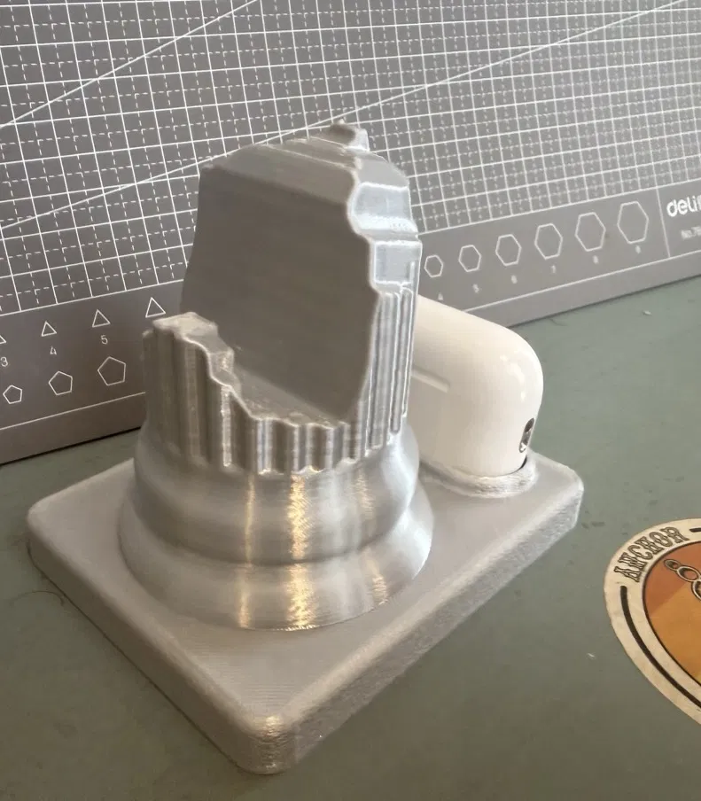 Mẫu giá đỡ phong cách trụ cột cổ điển để đặt điện thoại và hộp AirPods Pro 2 gọn gàng trên bàn. Thích hợp in bằng PLA (ví dụ Creality PLA Silk Silver), tối ưu cho trưng bày và sử dụng hằng ngày.