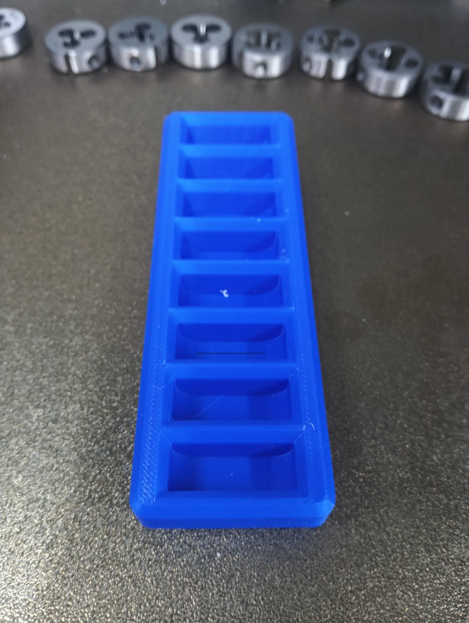Giá đỡ taro Gridfinity – 8 threading dies (Ø25mm)