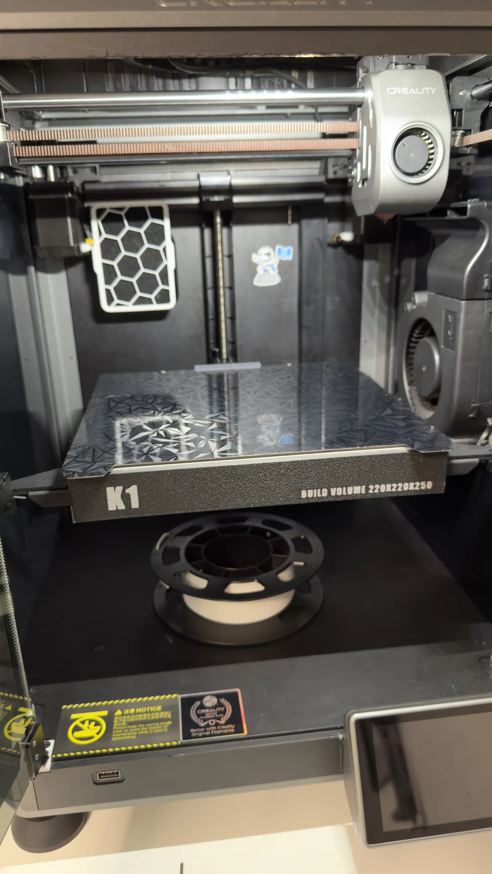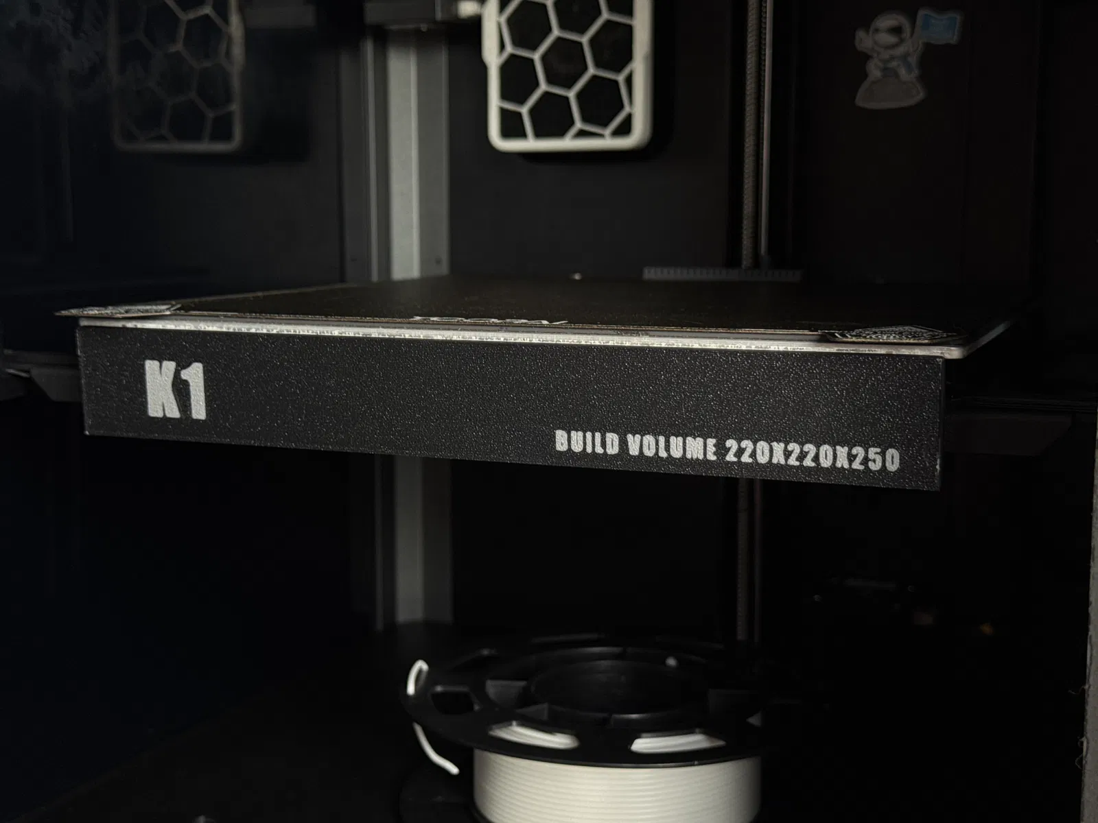 Bảng tên đơn giản cho K1, dùng 2 con ốc trên bed để giữ cố định nên không bị xê dịch hay rung lắc, rất cứng cáp. In úp mặt xuống và bật supports cho phần ngàm/bệ bắt ốc.