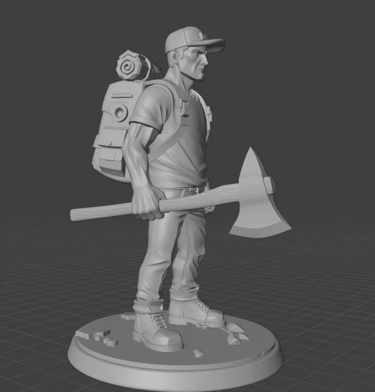 Miniature 3D Project Zomboid Survivor dạng stylized, cầm rìu và đeo balo, sẵn sàng cho tận thế Knox Country. Tối ưu in FDM với tay chân dày, đế chắc; layer 0.12–0.2mm, infill 10–15%, cần supports.