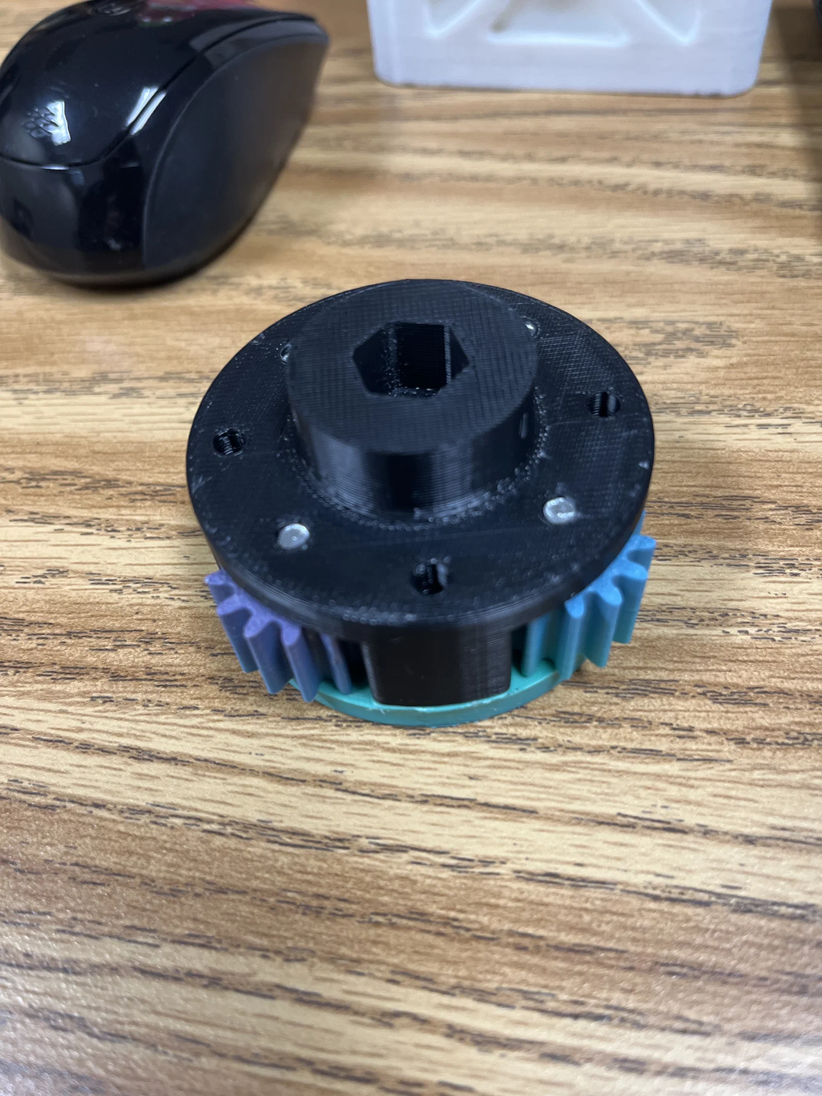 Hộp số hành tinh 3 tầng, thiết kế để chạy với motor FRC CIM, nhưng bạn có thể dùng với motor nào cũng được.