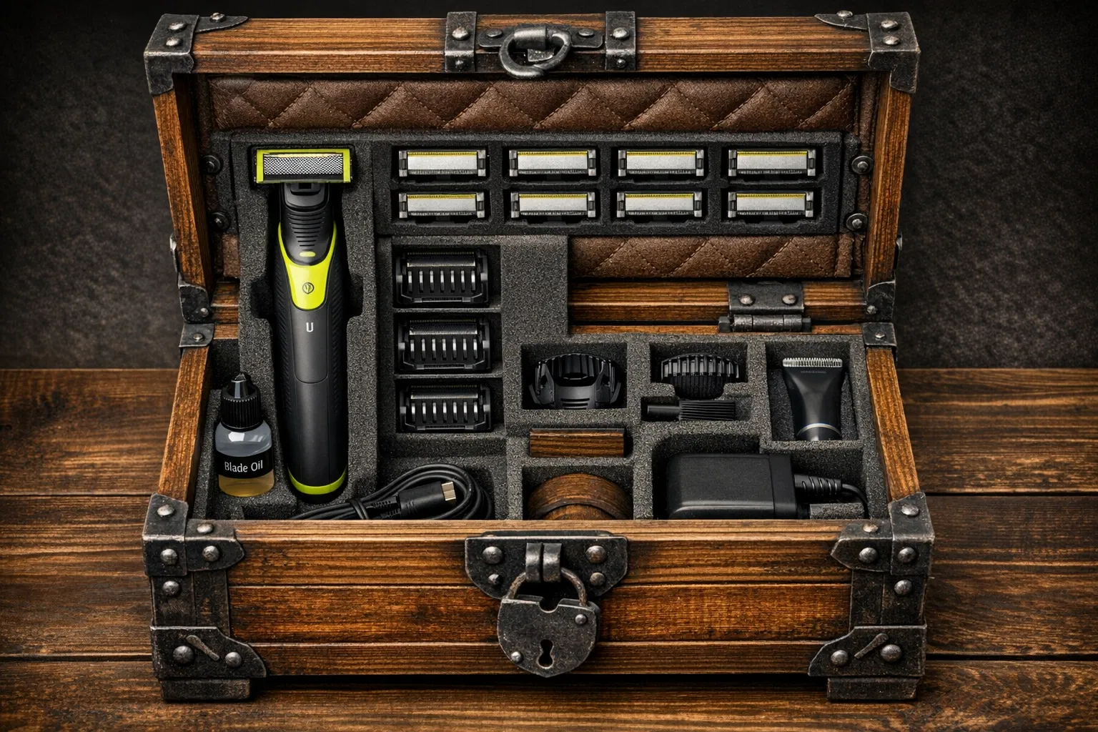 Mẫu “Phillips Oneblade & Kingdom Come chest holder” lấy cảm hứng từ chiếc rương thợ cạo hoàng gia trong Kingdom Come: một chiếc rương bị đồn cất bằng chứng phản bội và bí mật về cái chết của Charles IV.