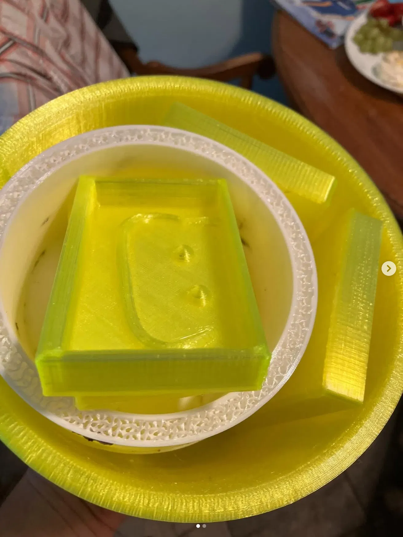 Bộ khuôn mẹ làm ly dạng pedestal cho 3 (hoặc 4 tùy scale) ngón. Quy trình: Print khuôn → đổ Ceramic Plaster → slipcast → nung ra ly. Khuyến nghị in TPU với 4–6 walls để bền và dễ tháo khuôn.