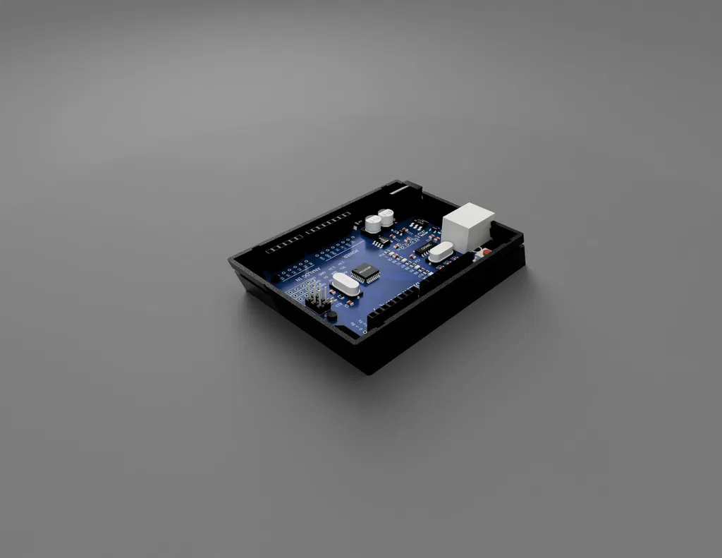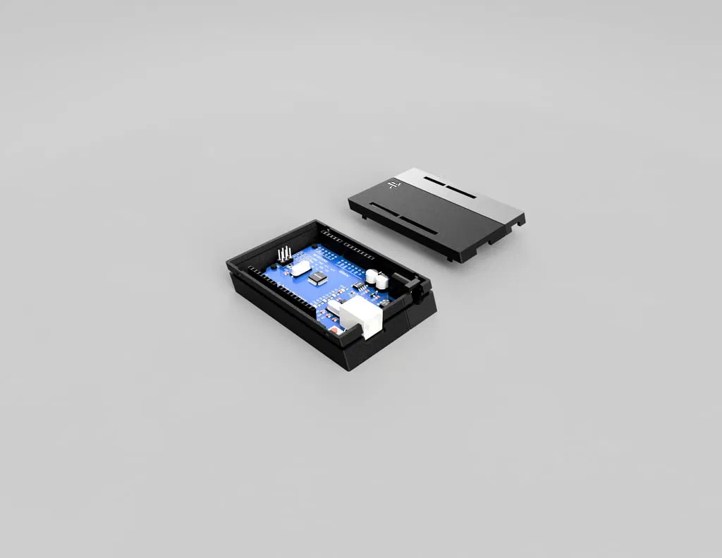 Mẫu này là một vỏ (enclosure) tuỳ biến cho Arduino UNO, lấy cảm hứng từ thiết kế của PlayStation 4 đời đầu (PS4 Fat). Case gồm 2 phần — nắp trên và đáy — bấm khớp với nhau bằng 4 ngàm (clip) tích hợp.