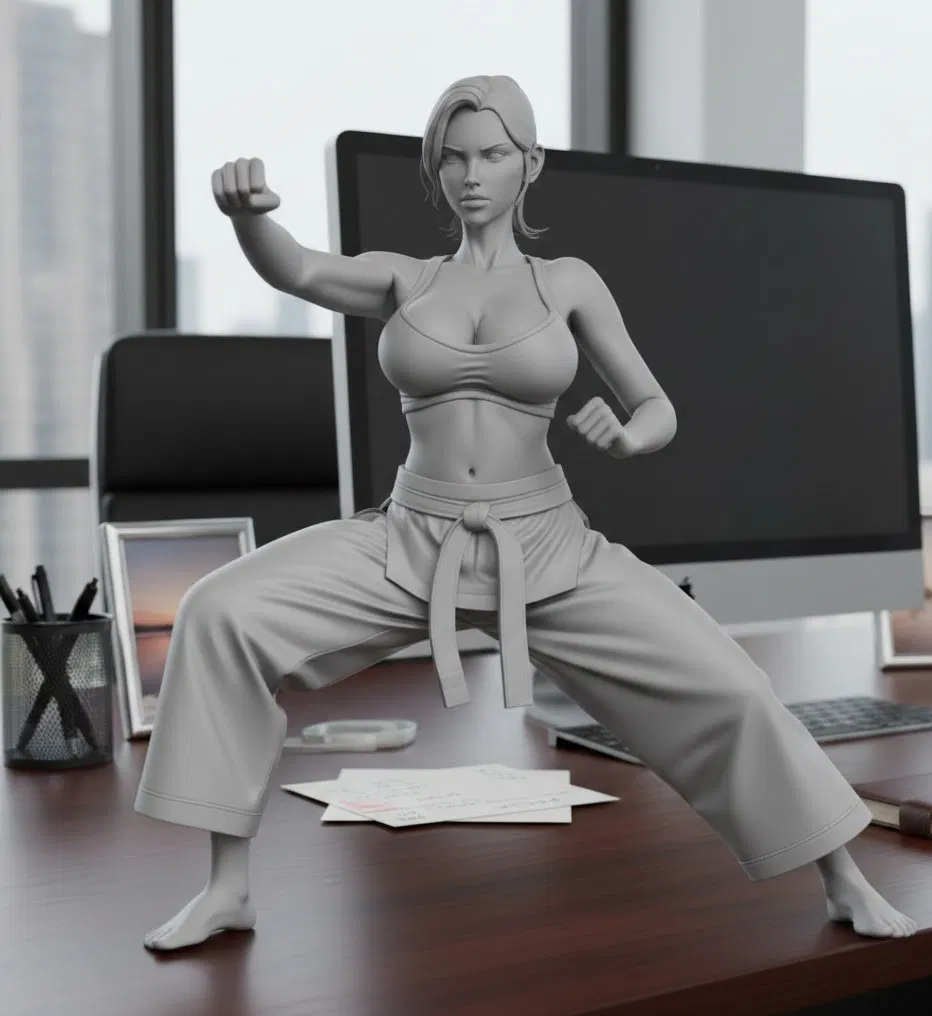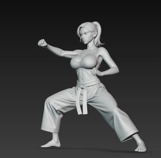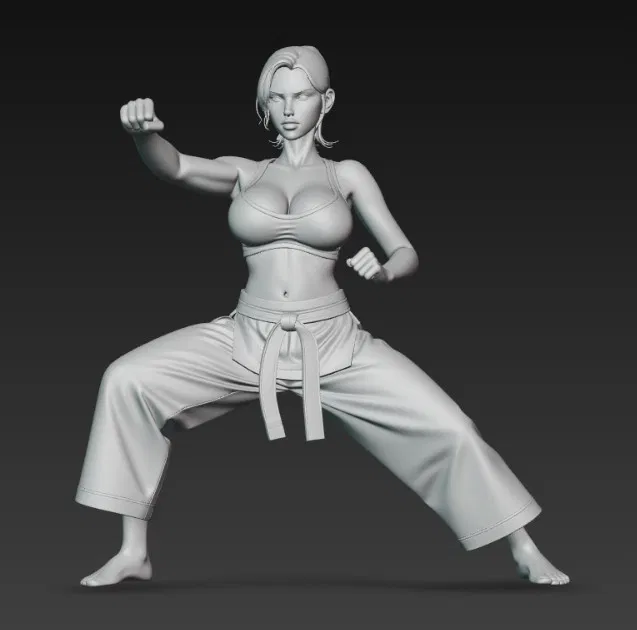 Mẫu 3D “cô gái gợi cảm đang tập karate” phù hợp để in làm tượng/figurine trưng bày. Tạo dáng theo buổi tập karate, nhấn vào phong cách sexy và tinh thần luyện tập.