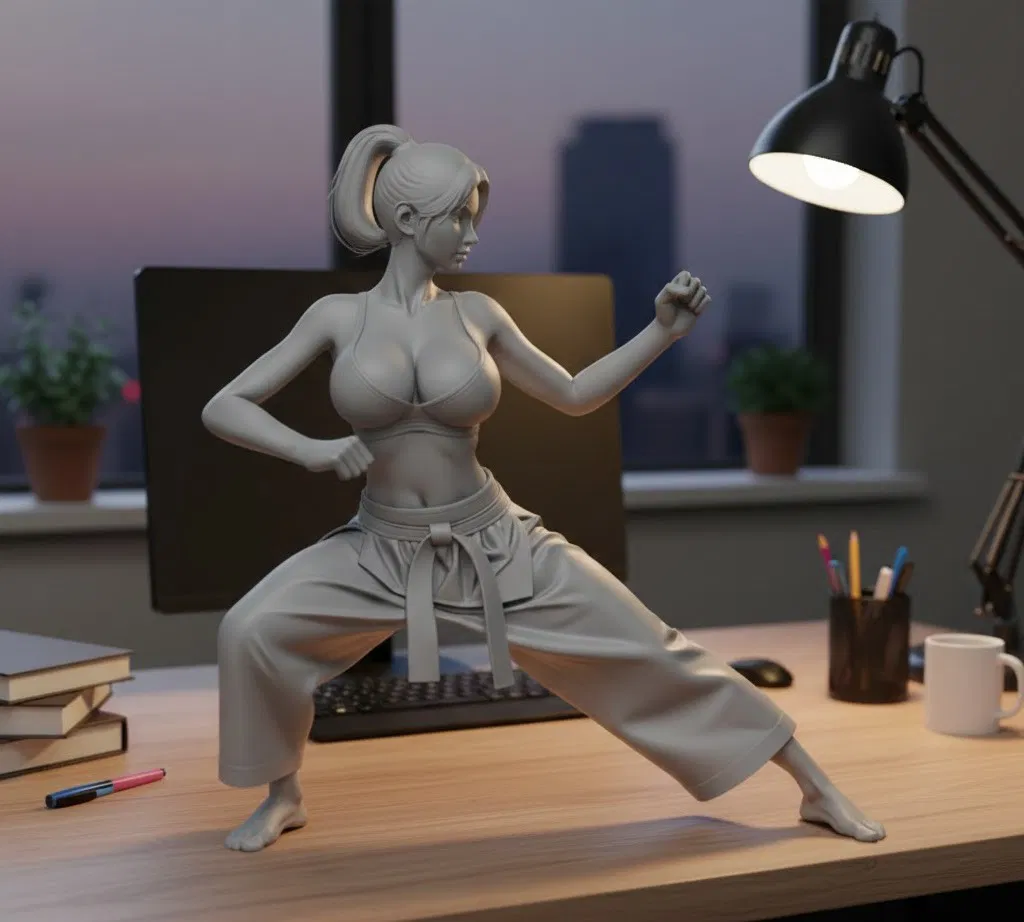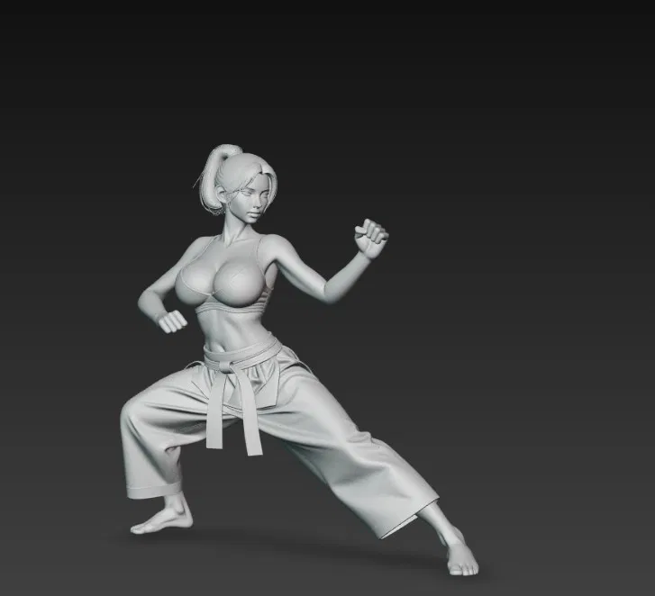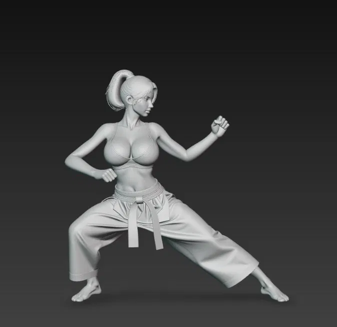 Mẫu 3D “female karate fighter” – tượng nhân vật nữ võ sĩ karate với tạo dáng chiến đấu mạnh mẽ. Phù hợp để in 3D làm figurine/trưng bày, dùng cho cosplay hoặc làm mô hình nhân vật trong game.