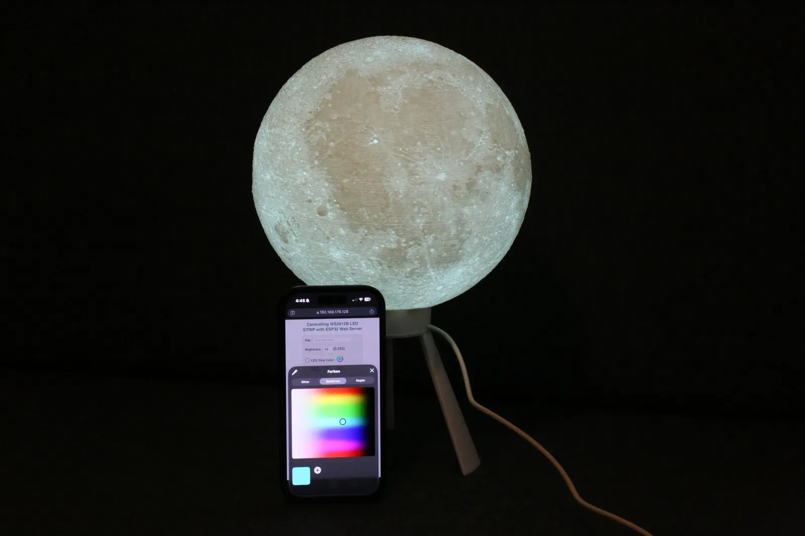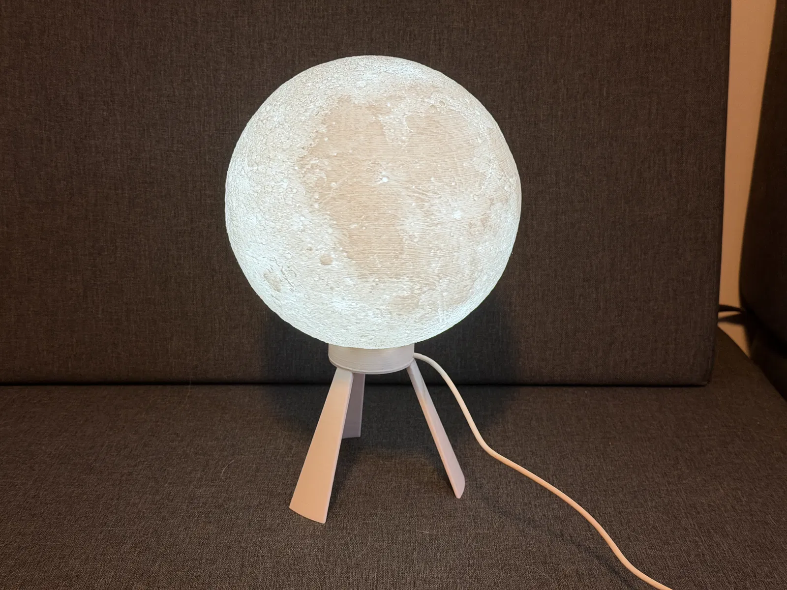 Bản remix nâng cấp Moon Lamp với stand gọn, ngàm gắn LED strip và holder cho ESP32 để làm đèn thông minh. Dễ lắp, đi dây sạch, hỗ trợ WiFi/app control và hiệu ứng. Có 2 phiên bản stand (một bản có lỗ cho công tắc).