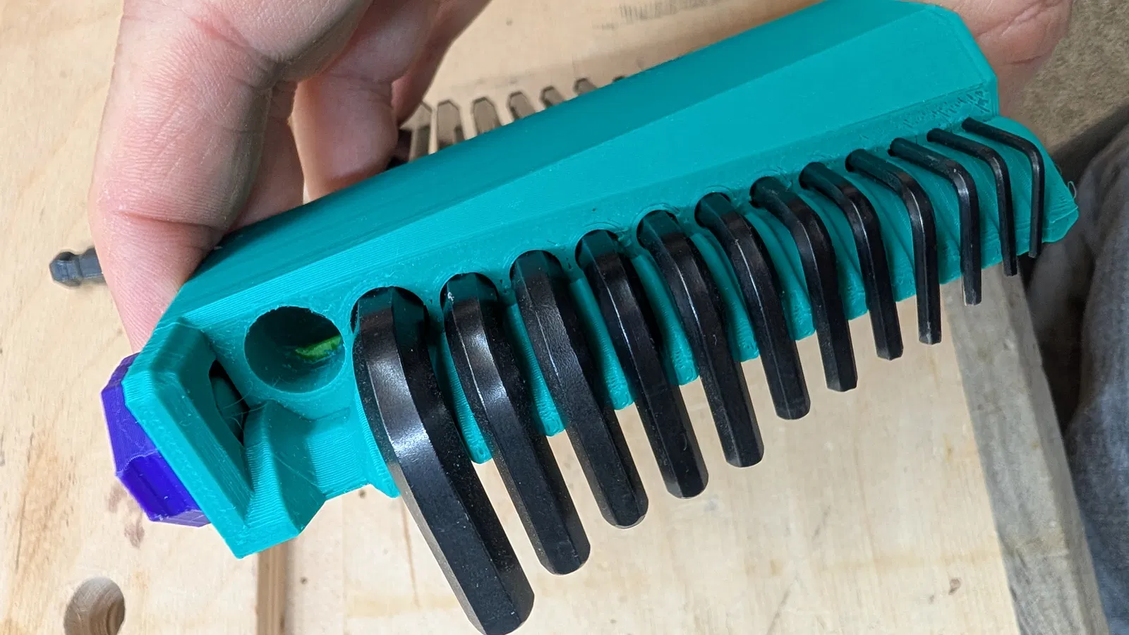 Thiết kế dùng một miếng insert bằng TPU để kẹp allen key cho chắc. Bạn in cái khung (chọn metric hoặc imperial) bằng vật liệu cứng như PLA, rồi in phần insert bằng TPU. Lúc nhét miếng TPU vô sẽ hơi cực một chút, nhưng bù lại kẹp đã tay, cầm chắc lắm!