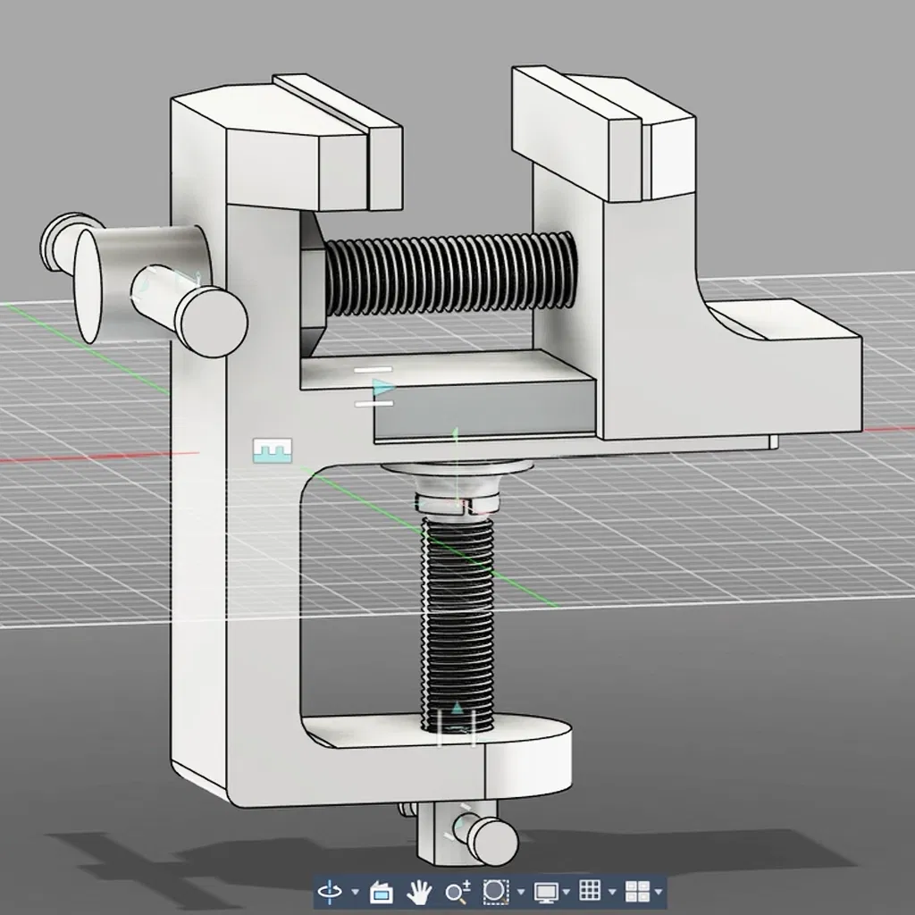 Ê-tô kẹp bàn chắc chắn, rất hữu ích để cố định chi tiết khi làm việc. Thiết kế in không cần supports, ren đặt nằm để tăng độ bền; khuyến nghị PETG/ABS/ASA cho thân và TPU 95A cho bọc ngàm.