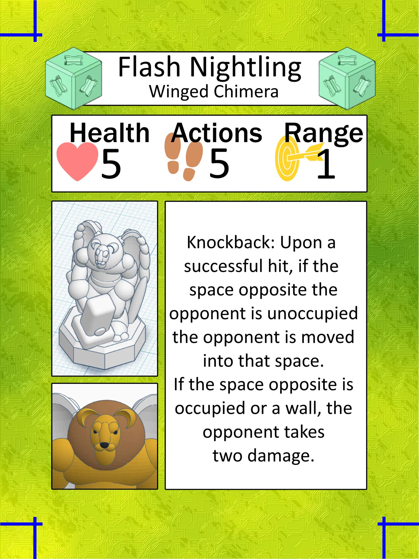 Bộ file cho PrintAQuest và PrintAQuest Skirmish gồm đế Skirmish và thẻ nhân vật trống, kèm Flash Nightling. Bạn có thể tự tạo nhân vật của mình bằng Tinkercad theo link hướng dẫn.