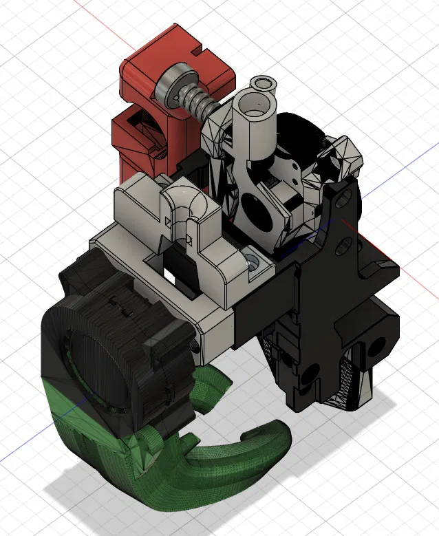 Carriage X-rail BCJ đã mod cho servo cutter và EBB42. Tương thích board toolhead zin, EBB42 Gen2, MicroSwiss FlowTec và quạt zin, không cần chain. Extruder cho ống 4mm/ECAS04, có ngõ riêng cho gate 5 (PicoMMU).