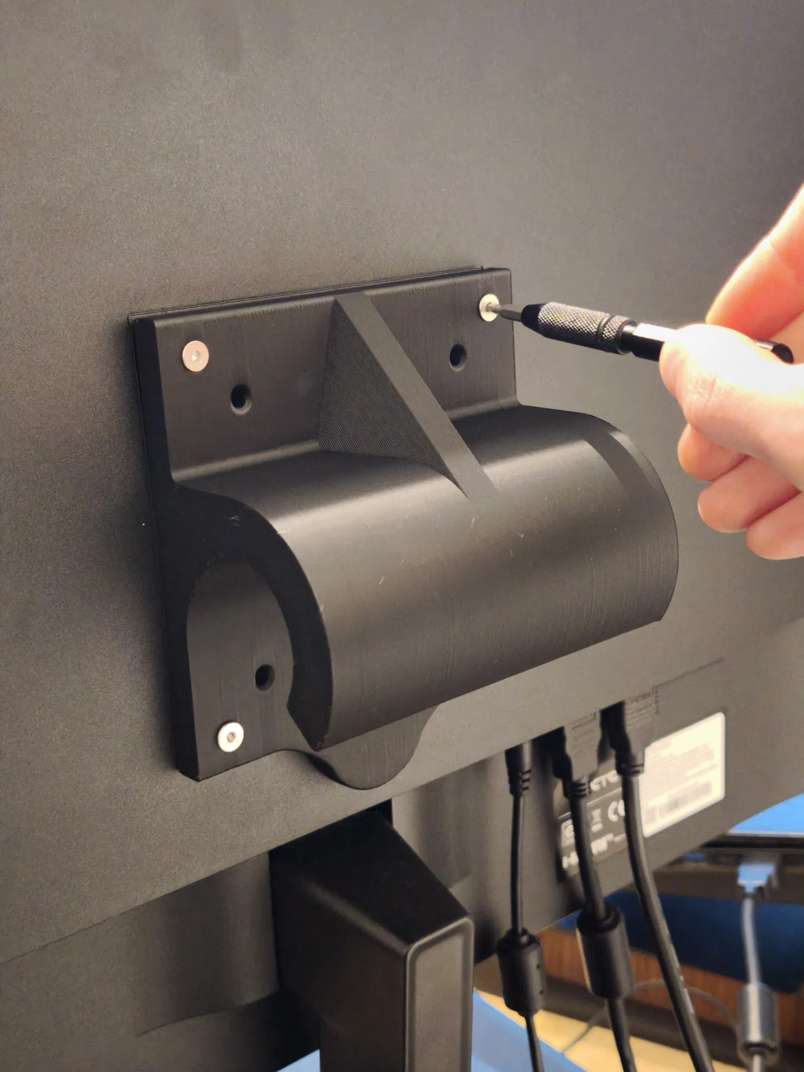 - Bắt chặt file "VESA75and100Mount.stl" vào mặt sau màn hình.