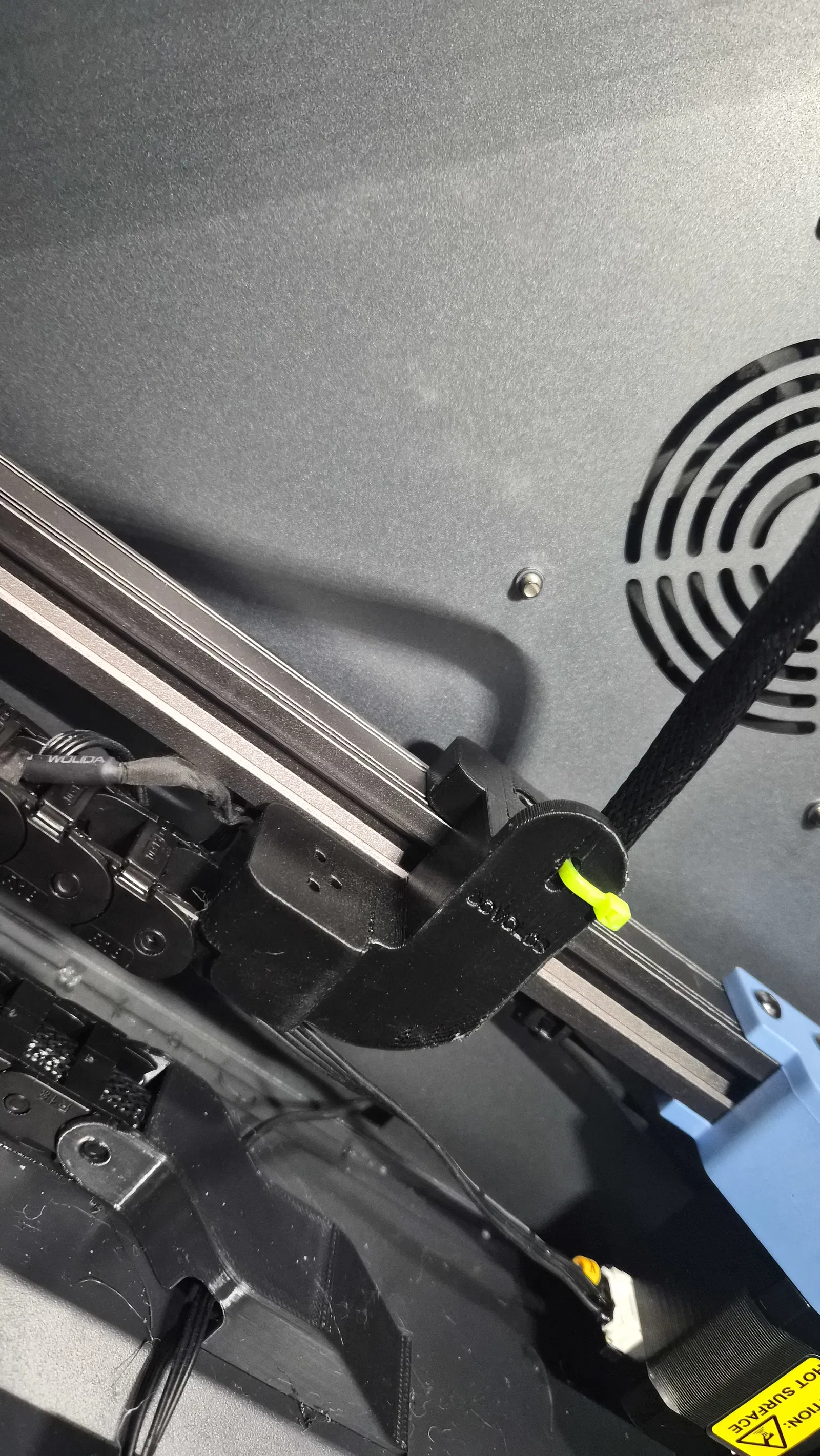 Rút ngắn wiring bracket zin của Sovol SV08 để tăng độ chùng (slack) cho wiring harness, giúp đoạn dây giữa bracket và toolhead thoải mái hơn, giảm bị căng khi máy hoạt động.