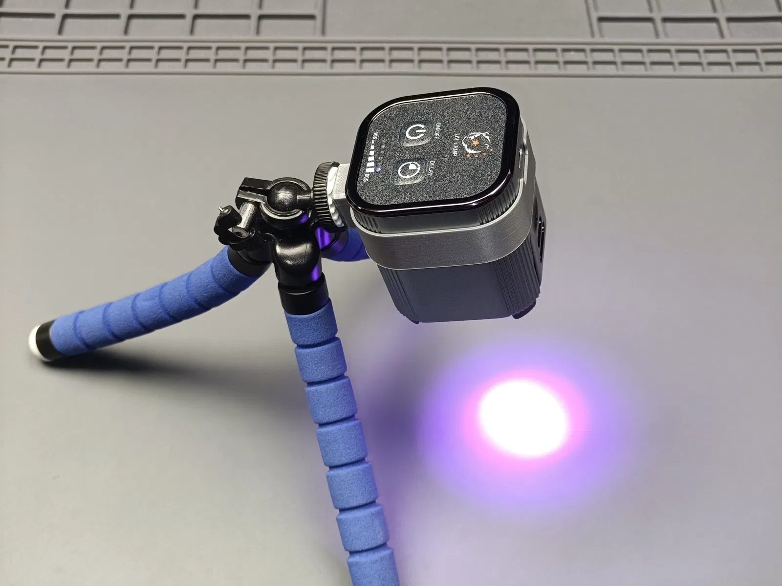 Đôi khi mình muốn chiếu UV phủ được diện tích lớn hơn, nhưng mấy cái chân nhỏ trên đèn lại không cho làm vậy. Với cái ngàm gắn tripod này, mình có thể chỉnh độ cao và xoay hướng theo ý.