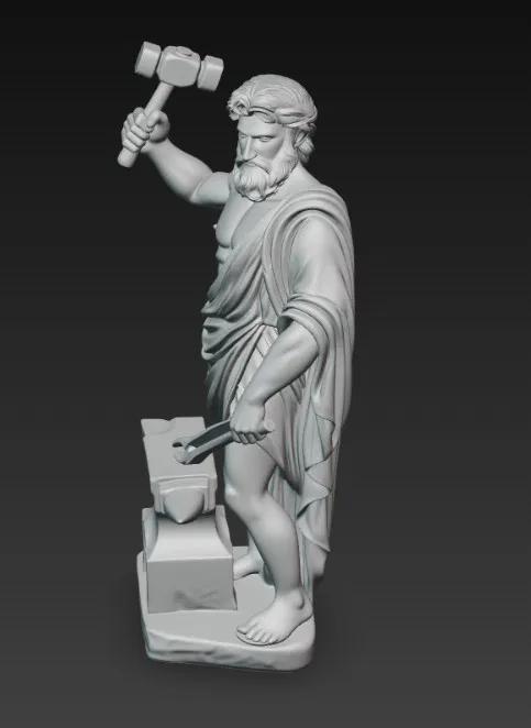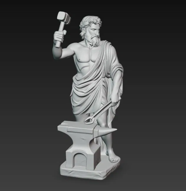 Mẫu tượng thần Hy Lạp Hephaestus dạng figurine, phù hợp để trưng bày hoặc in 3D làm mô hình sưu tầm. Thiết kế theo phong cách tượng thần cổ điển, dùng làm đồ trang trí hoặc đạo cụ game.