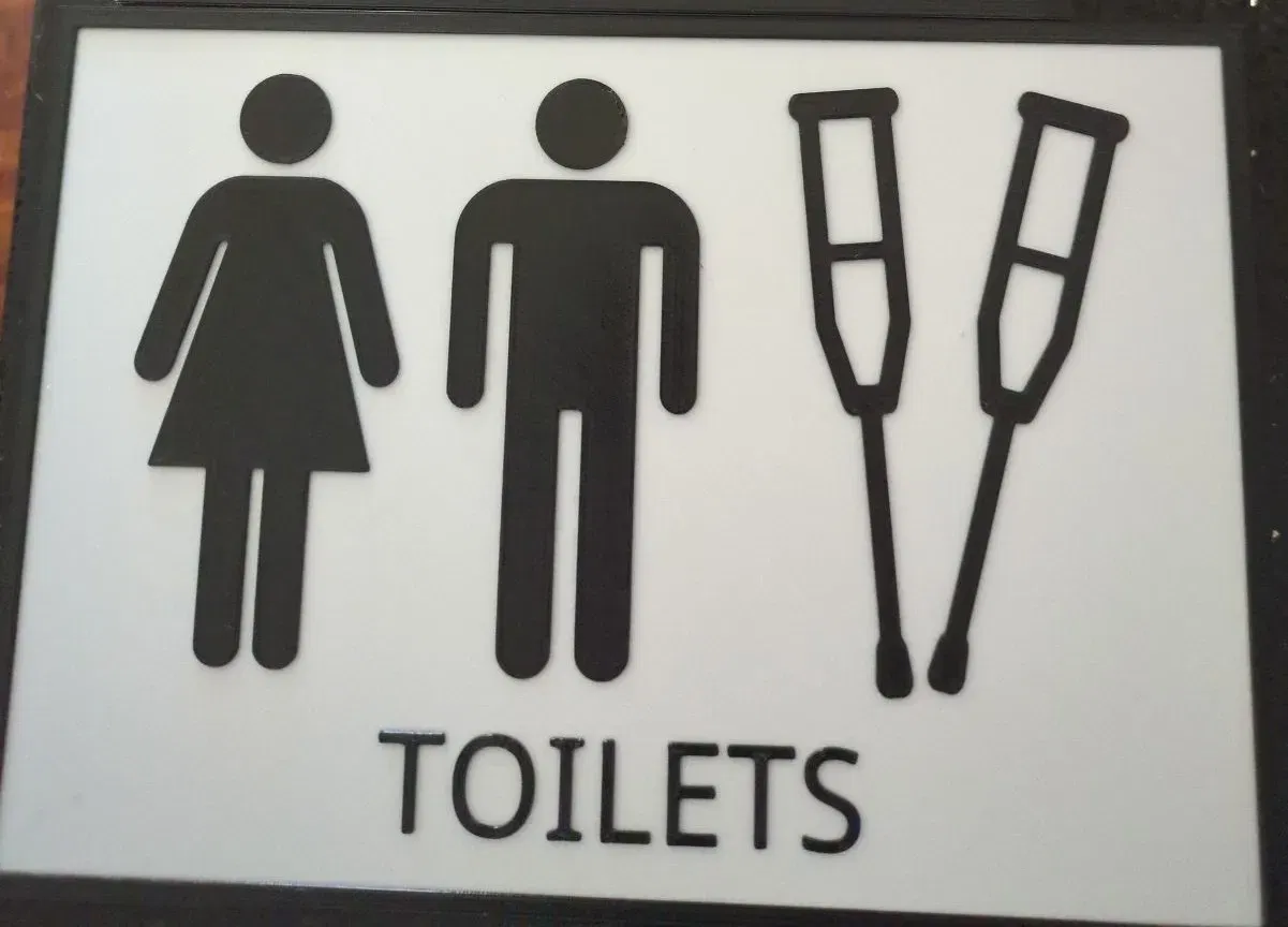 Biển báo nhà vệ sinh dành cho người khuyết tật, không nhãn hiệu và unisex.