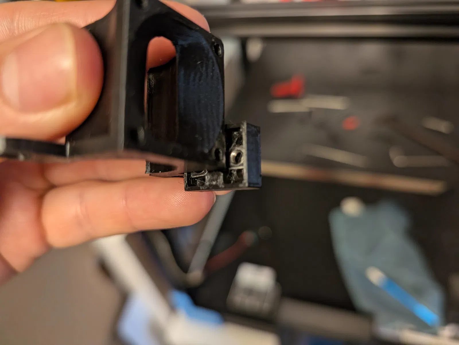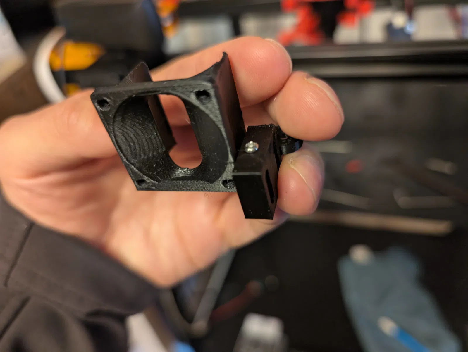 Mình mới dựng một bộ Vzbot gantry trên Ender6. Phần hotend mình dùng hotend kiểu V6 và một Eddy BTT. Lúc đầu mình làm một cái holder chỉ cho BTT thôi, nhưng rồi nhận ra là nó sẽ bị rung/lạch cạch khi in, vì bình thường quạt V6 không bắt vào đâu cả, chỉ kẹp vào heatsink.